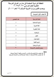 محلياتبالوثائق.. التربية تنشر "جدول عدد الحصص الدراسية" المعتمد في مدارس العراق قبل 3 سنوات 7 مشاهدات شارك وزارة التربيةاقرأ ايضا بالوثيقة.. مجلس محافظة البصرة يستعد لجمع تواقيع لمناقشة موضوع "إقليم البصرة" إقليم كردستان يعطل الدوام الرسمي ليوم الخميس المقبل صلاح الدين تعطل الدوام الرسمي يومي الأربعاء والخميس المقبلين بالفيديو والصور.. تظاهرة لخريجي كليات الطب للمطالبة بتعيينهم الوسوموزارة التربية العراقيةقد يهمك أيضا سياسة "الرشيد" تنشر نص قرارات مجلس الوزراء في جلسة اليوم قبل 12 دقيقة 2 مشاهدات سياسة روسيا تعلن استعدادها للتعاون مع الحكومة العراقية المقبلة قبل 31 دقيقة 3 مشاهدات أقتصاد الصناعة: تحقيق الاكتفاء الذاتي من غازي النيتروجين والأوكسجين وفرض رسوم على المستورد قبل ساعتين 8 مشاهدات أقتصاد تعرف على اسعار صرف الدولار عند اغلاق البورصة قبل ساعتين 6 مشاهدات عربي ودولي وزير الدفاع الإسرائيلي: لن ننسحب من غزة بالكامل أبداً وسنعيد استيطان شمال القطاع قبل ساعتين 6 مشاهدات