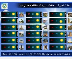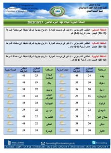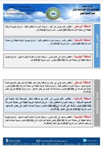 أعلنت هيئة الأنواء الجوية، اليوم الاثنين، عن حالة الطقس في البلاد للأسبوع الحالي، فيما توقعت تساقطاً للأمطار وتصاعداً للغبار.