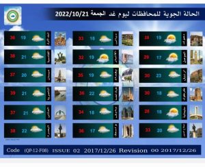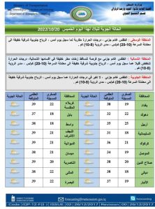 أعلنت هيئة الانواء الجوية، حالة الطقس خلال الأيام المقبلة، فيما أشارت إلى أمطار متفرقة وارتفاع بدرجات الحرارة خلال الأيام المقبلة.