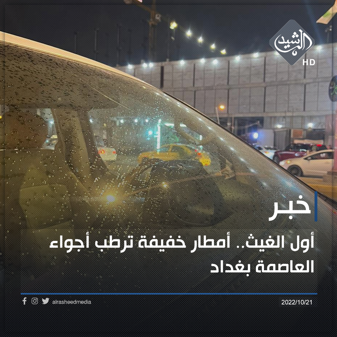 وقال مراسل الرشيد، إن"بعض مناطق العاصمة بغداد شهدت هطول أمطار خفيفة".