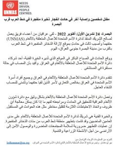 أمنمقتل وإصابة 3 اشخاص من فريق الامم المتحدة بانفجار في شط العرب قرب البصرة قبل 3 سنوات 5 مشاهدات شارك الوسومالامم المتحدةالبصرةانفجارشط العربقد يهمك أيضا علوم وتكنولوجيا خلل فني يوقف عمل منصات ومواقع عالمية على الإنترنت قبل 8 دقائق 2 مشاهدات عربي ودولي نعيم قاسم: ننتظر من الحكومة اللبنانية أن تبين لنا بطولاتها بإيقاف العدوان وتحرير الأسرى والإعمار قبل 17 دقيقة 4 مشاهدات رياضة أخطاء كارثية وكرات ساخنة.. كوابيس الماضي تحاصر قرعة كأس العالم قبل 28 دقيقة 4 مشاهدات عربي ودولي حماس: وافقنا على تشكيل لجنة تكنوقراط لحكم غزة قبل 39 دقيقة 8 مشاهدات رياضة عرض سعودي ضخم لضم رافينيا يربك حسابات برشلونة قبل 43 دقيقة 5 مشاهدات
