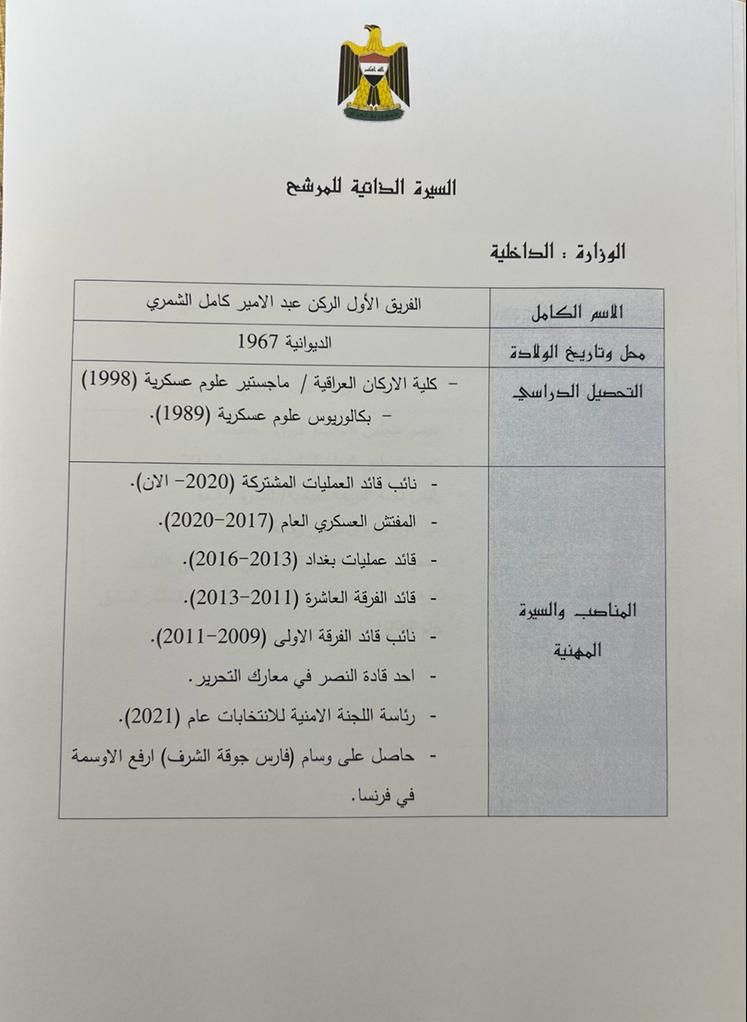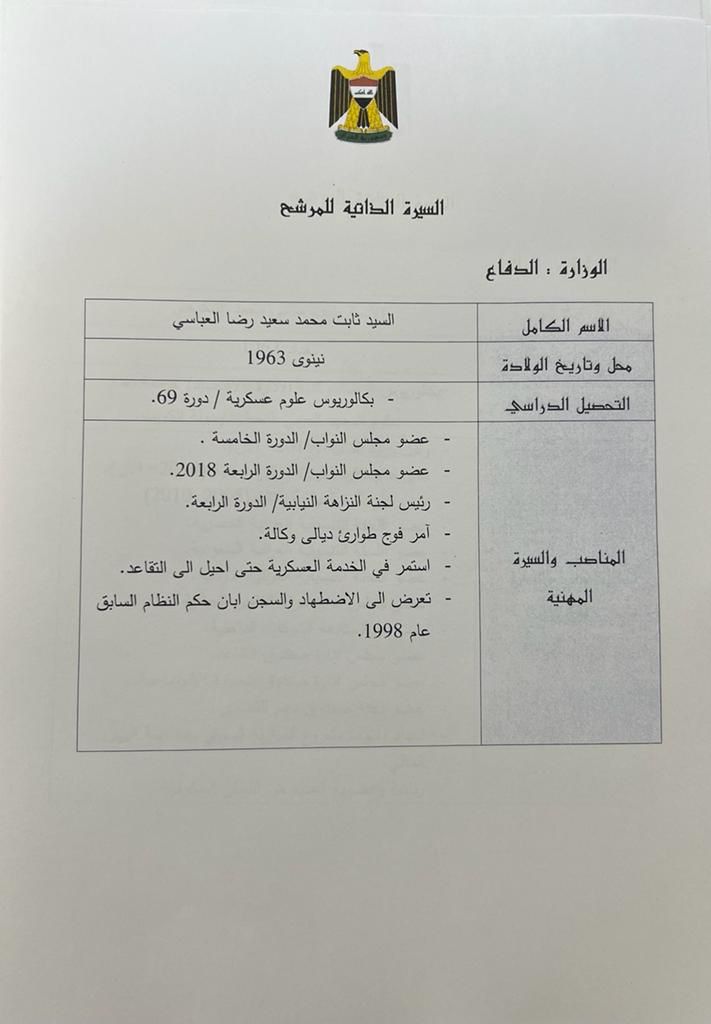 سياسةالرشيد تنشر السير الذاتية لمرشحي وزارات الداخلية – الدفاع – العدل قبل 3 سنوات 4 مشاهدات شارك الوسوممحمد شياع السودانيقد يهمك أيضا أمن مقتل شاب برصاصة أطلقها منتسب أمني بالخطأ خلال "مشاجرة اعتيادية" في أبي غريب غربي بغداد قبل ساعة واحدة 7 مشاهدات رياضة مدرب الأرجنتين معلقاً على قرعة المونديال: منتخب الجزائر قوي والأردن مجهول بالنسبة لي قبل ساعة واحدة 12 مشاهدات محليات العراق يستقبل موجة أمطار غزيرة.. الأنواء تحذر من سيول وفيضانات في المناطق غير المخدومة اعتباراً من الغد قبل ساعتين 16 مشاهدات محليات المالية تنفي استقبال نائبة للتفاوض مع وزيرتها بشأن مستحقات المقاولين قبل ساعتين 10 مشاهدات عربي ودولي البيت الأبيض يحذر: أوروبا مهددة بـ"زوال الحضارة" خلال 20 عاماً قبل ساعتين 9 مشاهدات