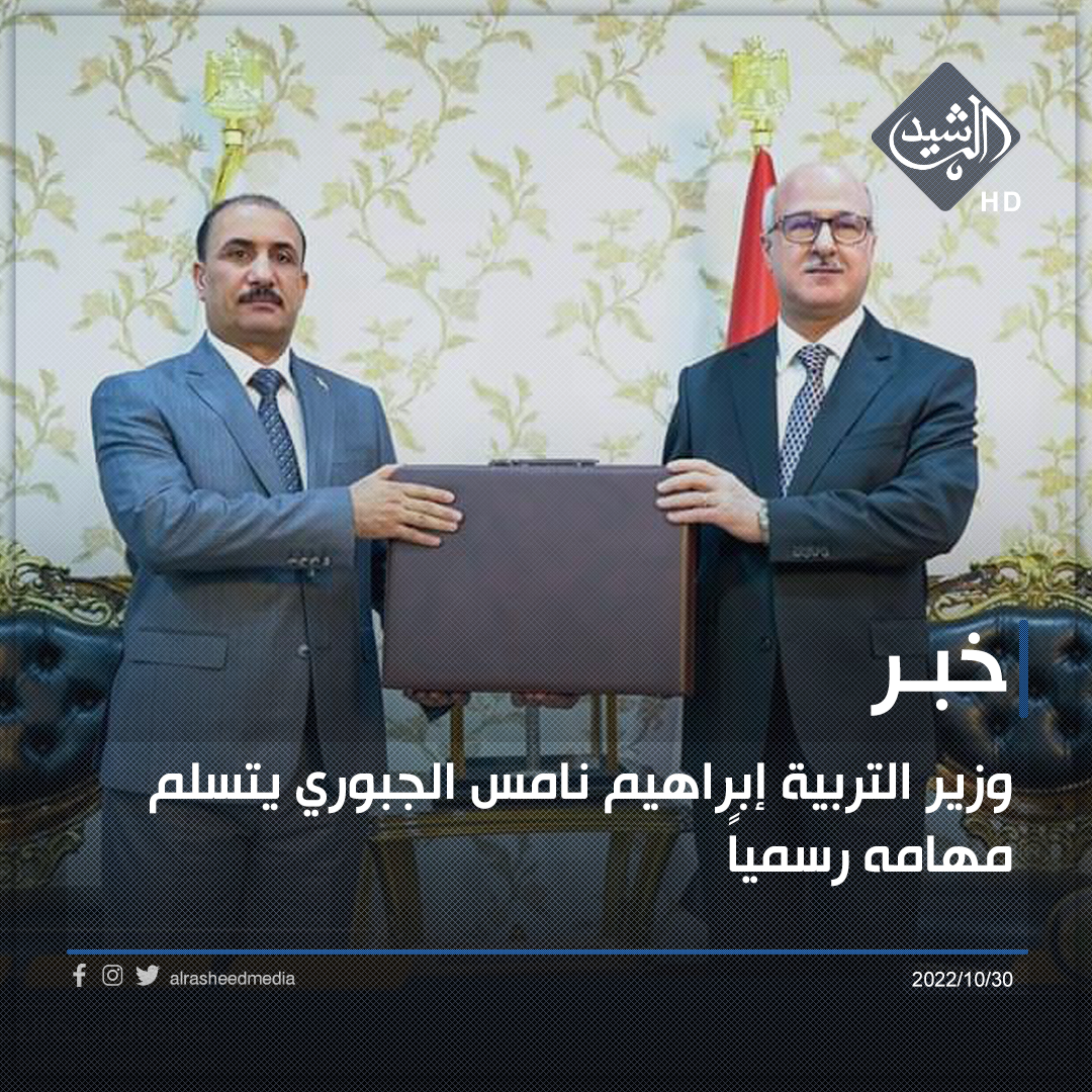 وذكر بيان لوزارة التربية، تلقته الرشيد، أن “وزير التربية إبراهيم نامس الجبوري، تسلم مهام عمله بشكل رسمي من سلفه علي حميد الدليمي، وذلك بعد أن حاز على ثقة مجلس النواب العراقي ضمن حكومة رئيس الوزراء محمد شياع السوداني”.