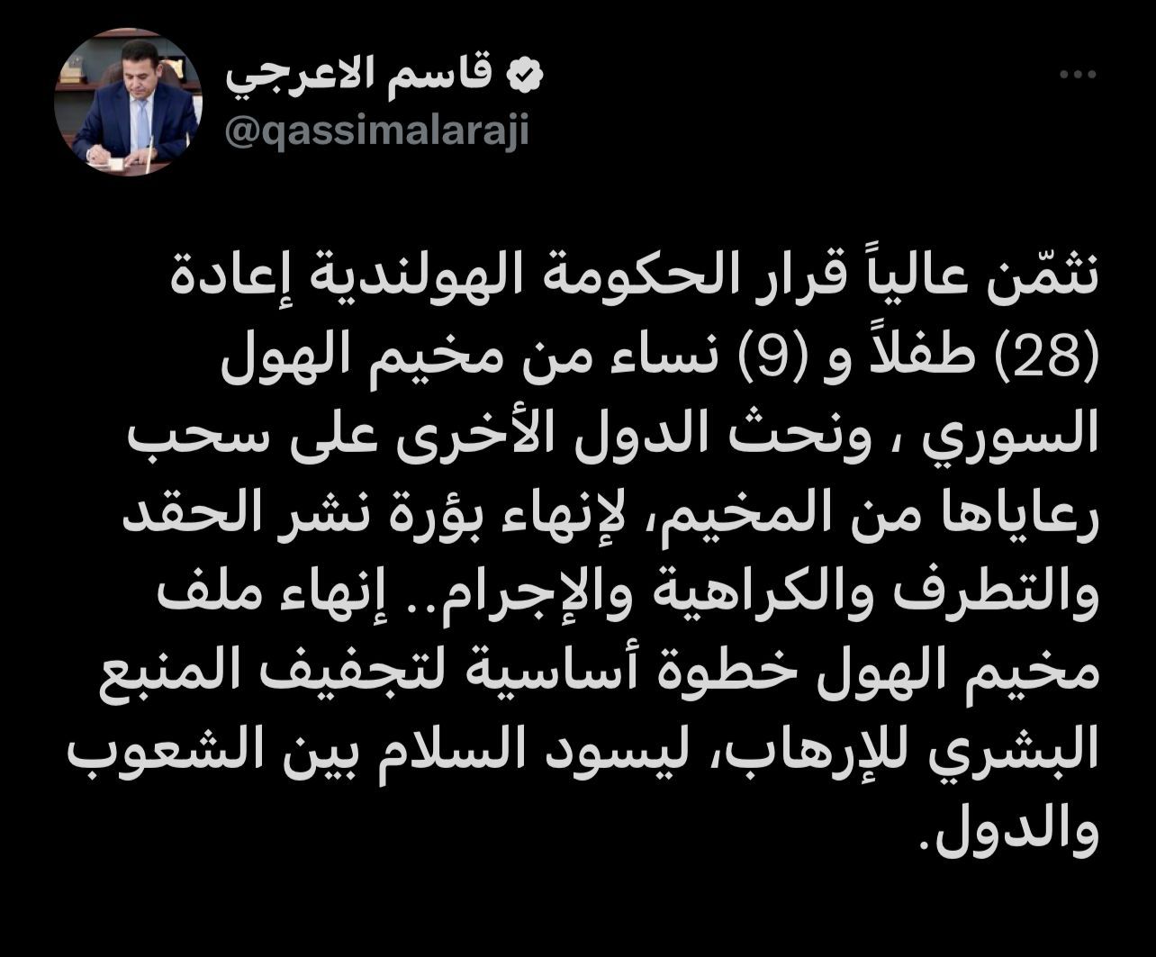 أمنالاعرجي: إنهاء ملف مخيم الهول خطوة أساسية لتجفيف المنبع البشري للإرهاب قبل 3 سنوات 7 مشاهدات شارك الوسومقاسم الاعرجيمخيم الهولقد يهمك أيضا رياضة "توالي الأزمات".. ليفربول يوجه ضربة قوية لمحمد صلاح ويقرر بيعه قبل 26 دقيقة 5 مشاهدات عربي ودولي الرئيس اللبناني يطالب مجلس الأمن بالضغط على إسرائيل لتطبيق وقف إطلاق النار قبل 37 دقيقة 5 مشاهدات عربي ودولي موسكو: قد يتم عقد لقاء بين بوتين وترامب في القريب العاجل قبل 55 دقيقة 7 مشاهدات محليات العدل تعلن إطلاق سراح 761 نزيلاً خلال تشرين الثاني قبل ساعة واحدة 11 مشاهدات عربي ودولي ارتفاع عدد ضحايا الفيضانات والانهيارات الأرضية في إندونيسيا إلى 846 قبل ساعتين 12 مشاهدات