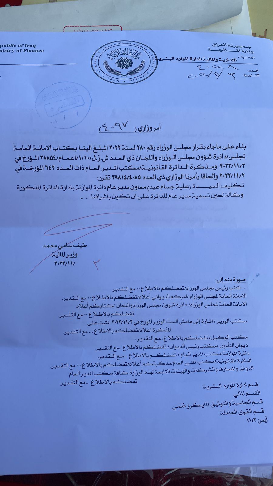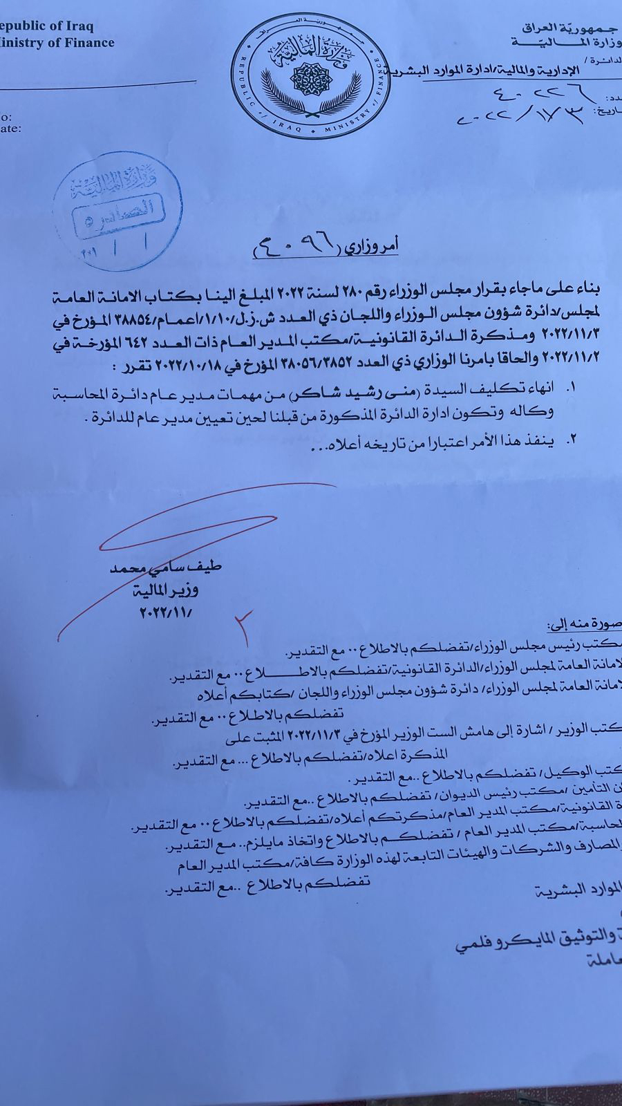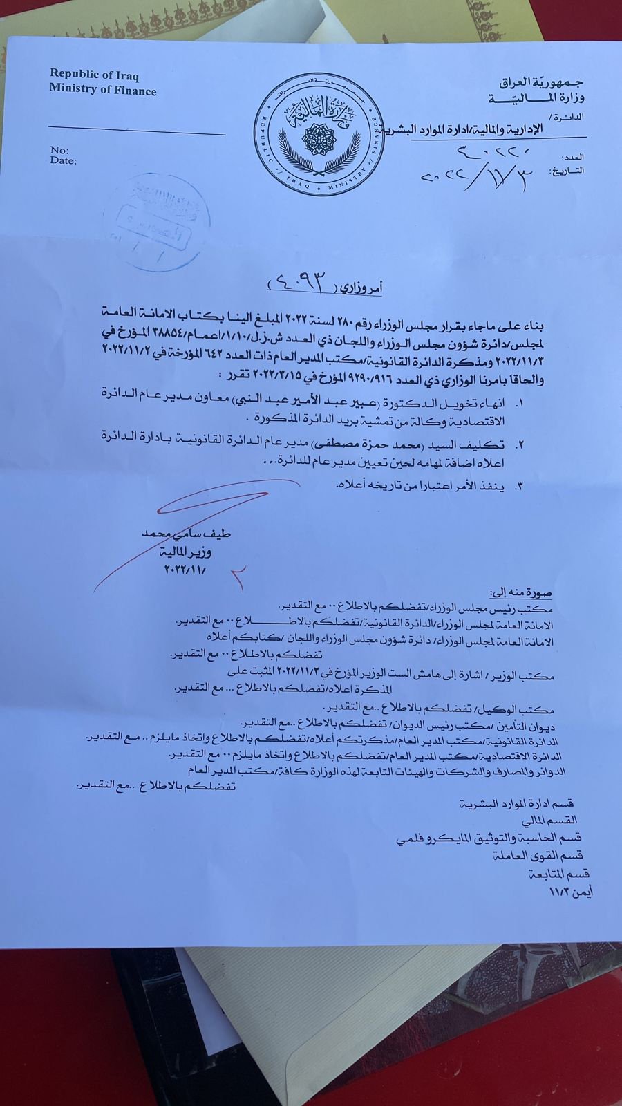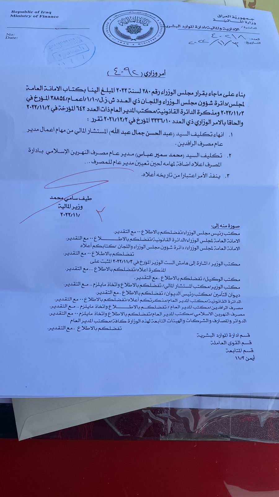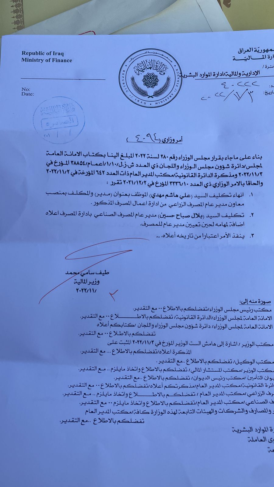 سياسةبالوثائق.. تغييرات بالجملة في وزارة المالية قبل 3 سنوات 3 مشاهدات شارك الوسوموزارة الماليةقد يهمك أيضا محليات بالوثيقة.. صدور مذكرة قبض بحق "حسين العنكوشي" بتهمة إهانة رمز ديني بطريقة علنية قبل 7 دقائق 4 مشاهدات أقتصاد العمل تعلن إطلاق راتب المعين المتفرغ لشهر كانون الأول قبل 34 دقيقة 7 مشاهدات عربي ودولي حماس: الاحتلال يعرقل الانتقال للمرحلة الثانية من اتفاق وقف إطلاق النار في غزة قبل 36 دقيقة 4 مشاهدات عربي ودولي وزير الخارجية السوري: العلاقات مع روسيا تدخل مرحلة جديدة قبل ساعة واحدة 5 مشاهدات أمن اعتقال 20 متهماً بالحرق العشوائي في النهروان جنوب شرق بغداد قبل ساعة واحدة 4 مشاهدات