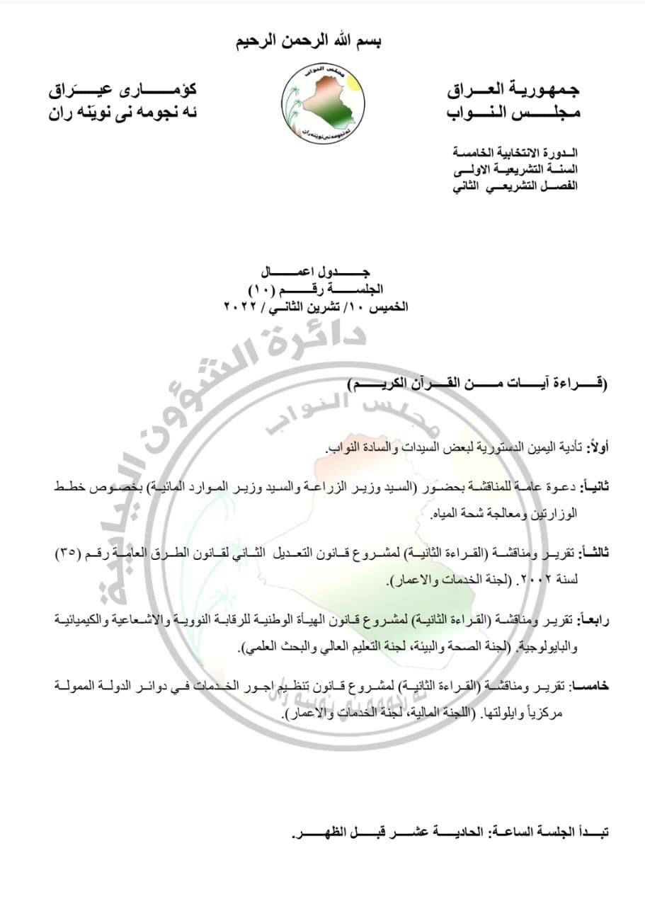 سياسةيتضمن خمس فقرات.. الرشيد تنشر جدول أعمال جلسة البرلمان ليوم غد قبل 3 سنوات 2 مشاهدات شارك أعلنت الدائرة الإعلامية لمجلس النواب، جدول أعمال الجلسة المقرر عقدها يوم غد. وتضمن جدول الأعمال خمس فقرات وعلى النحو الآتي: الوسومالبرلمانقد يهمك أيضا رياضة الفيفا يمنح جائزة السلام 2025 لدونالد ترامب قبل 26 دقيقة 4 مشاهدات أمن العراق يعلن إنشاء "بنك معلومات وطني" للأسلحة قبل 43 دقيقة 4 مشاهدات عربي ودولي قيود وضوابط جديدة.. اليابان تشدد سياسات الهجرة رغم شيخوخة السكان قبل 47 دقيقة 7 مشاهدات محليات العراق يستعد لاستقبال حالة جوية غير مستقرة وأمطار غزيرة اعتباراً من مساء الغد قبل ساعة واحدة 5 مشاهدات عربي ودولي ألمانيا: سيتعين على أوروبا الحوار مع روسيا "في مرحلة ما" قبل ساعتين 6 مشاهدات