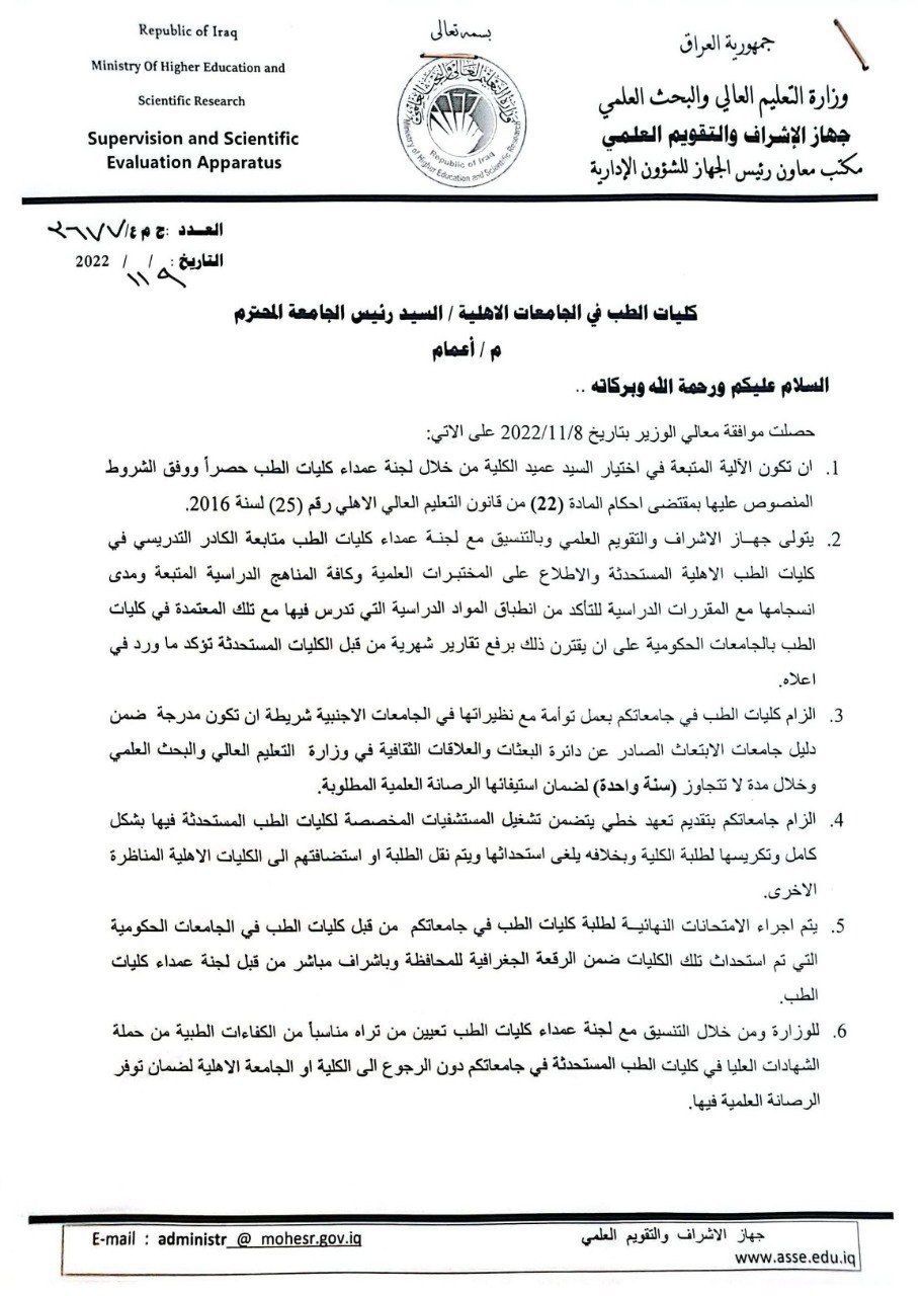 محلياتالتعليم تصدر توجيهات للجامعات الاهلية (وثيقة) قبل 3 سنوات 4 مشاهدات شارك الوسوموزارة التعليم العالي والبحث العلميقد يهمك أيضا محليات المثنى تقرر تعطيل الدوام الرسمي الأربعاء بسبب سوء الأحوال الجوية قبل 7 ساعات 19 مشاهدات محليات النجف تقرر تعطيل الدوام الرسمي يوم غد الأربعاء بسبب سوء الأحوال الجوية قبل 8 ساعات 11 مشاهدات سياسة السيد الصدر يقرر تجميد سرايا السلام في البصرة والكوت لمدة ستة اشهر قبل 8 ساعات 14 مشاهدات رياضة الفرنسي عثمان ديمبلي يفوز بجائزة "ذا بيست" لأفضل لاعب في العالم قبل 10 ساعات 8 مشاهدات الثامنة الإجتماع الخامس للإطار .. حلقة مفرغة أيضاً قبل 11 ساعة 8 مشاهدات