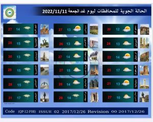 محلياتطقس العراق.. أمطار وانخفاض في درجات الحرارة خلال الأيام المقبلة قبل 3 سنوات 3 مشاهدات شارك أعلنت هيئة الأنواء الجوية، حالة طقس العراق خلال الأيام المقبلة، فيما اشارت الى أمطار وانخفاض في درجات الحرارة. الوسومطقس العراققد يهمك أيضا أمن مقتل شاب برصاصة أطلقها منتسب أمني بالخطأ خلال "مشاجرة اعتيادية" في أبي غريب غربي بغداد قبل ساعتين 7 مشاهدات رياضة مدرب الأرجنتين معلقاً على قرعة المونديال: منتخب الجزائر قوي والأردن مجهول بالنسبة لي قبل ساعتين 14 مشاهدات محليات العراق يستقبل موجة أمطار غزيرة.. الأنواء تحذر من سيول وفيضانات في المناطق غير المخدومة اعتباراً من الغد قبل 3 ساعات 16 مشاهدات محليات المالية تنفي استقبال نائبة للتفاوض مع وزيرتها بشأن مستحقات المقاولين قبل 3 ساعات 10 مشاهدات عربي ودولي البيت الأبيض يحذر: أوروبا مهددة بـ"زوال الحضارة" خلال 20 عاماً قبل 3 ساعات 9 مشاهدات