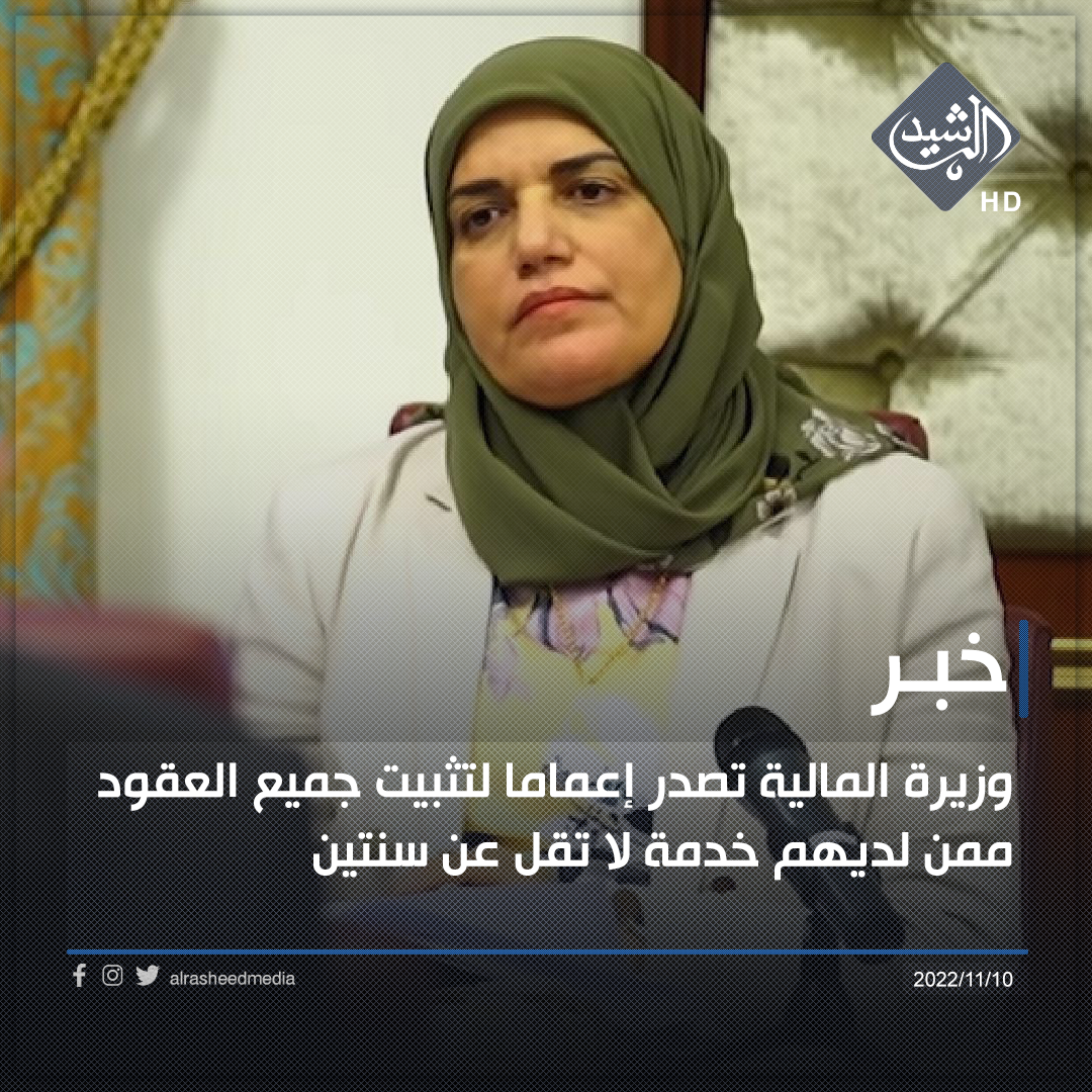 وزيرة المالية تصدر إعماما لتثبيت جميع العقود ممن لديهم خدمة لا تقل عن سنتين
