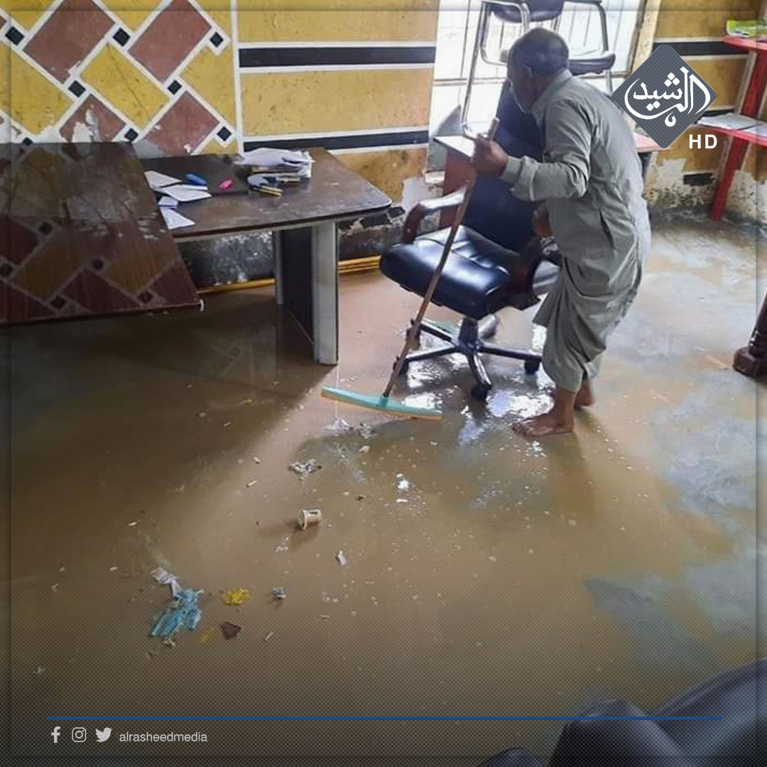 وقال مراسل الرشيد، إن"دائرة الرعاية الاجتماعية في قضاء بلدروز غرقت بمياه الأمطار".