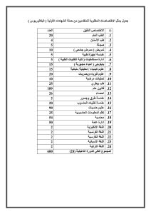 جدول يمثل الاختصاصات المطلوبة للمتقدمين من حملة الشهادات الأولية ( البكالوريوس )