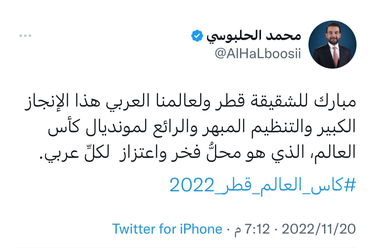 رياضةالحلبوسي يبارك لقطر والعالم العربي تنظيم كأس العالم قبل 3 سنوات 7 مشاهدات شارك الوسومالحلبوسيكأس العالم 2022قد يهمك أيضا سياسة مجلس القضاء الأعلى ينشر تواريخ الاستحقاقات الدستورية قبل 8 دقائق 5 مشاهدات الثامنة الكونغرس يضغط الفرامل: الدعم أم الفصائل؟ قبل 12 دقيقة 4 مشاهدات سياسة القائم بالاعمال الامريكي يؤكد حرص بلاده على مواصلة التعاون مع العراق لتحقيق التنمية والاستقرار قبل 16 دقيقة 4 مشاهدات سياسة السوداني: العلاقات بين العراق والولايات المتحدة تشهد تطوراً وتقدماً مستمراً قبل 18 دقيقة 3 مشاهدات أمن وكالة الاستخبارات تعلن فتح باب التطوع على ملاكها بصفة شرطي عقد قبل 27 دقيقة 27 مشاهدات