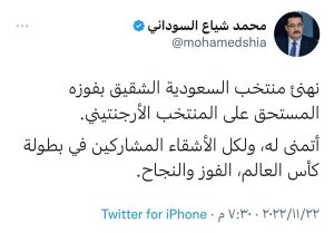 سياسةالسوداني يهنئ السعودية بفوزها على الأرجنتين قبل 3 سنوات 2 مشاهدات شارك الوسومالأرجنتينالسعوديةمحمد شياع السودانيقد يهمك أيضا علوم وتكنولوجيا خلل فني يوقف عمل منصات ومواقع عالمية على الإنترنت قبل 17 دقيقة 4 مشاهدات عربي ودولي نعيم قاسم: ننتظر من الحكومة اللبنانية أن تبين لنا بطولاتها بإيقاف العدوان وتحرير الأسرى والإعمار قبل 26 دقيقة 5 مشاهدات رياضة أخطاء كارثية وكرات ساخنة.. كوابيس الماضي تحاصر قرعة كأس العالم قبل 36 دقيقة 4 مشاهدات عربي ودولي حماس: وافقنا على تشكيل لجنة تكنوقراط لحكم غزة قبل 48 دقيقة 9 مشاهدات رياضة عرض سعودي ضخم لضم رافينيا يربك حسابات برشلونة قبل 52 دقيقة 5 مشاهدات