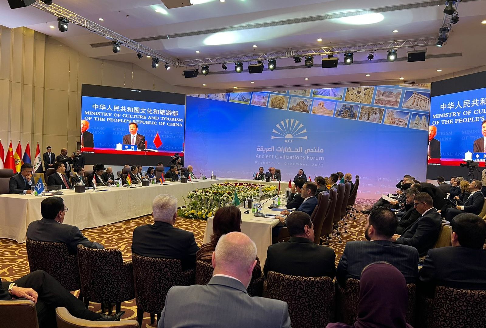 ونوه، الى ان “منتدى الحضارات يعد نهجاً دبلوماسياً لدعم الجهود العالمية في مواجهة التحديات”، مبينا ان “العراق تعرض في فترات مختلفة لسرقة ممنهجة لتهريب تراثه الثقافي”.
