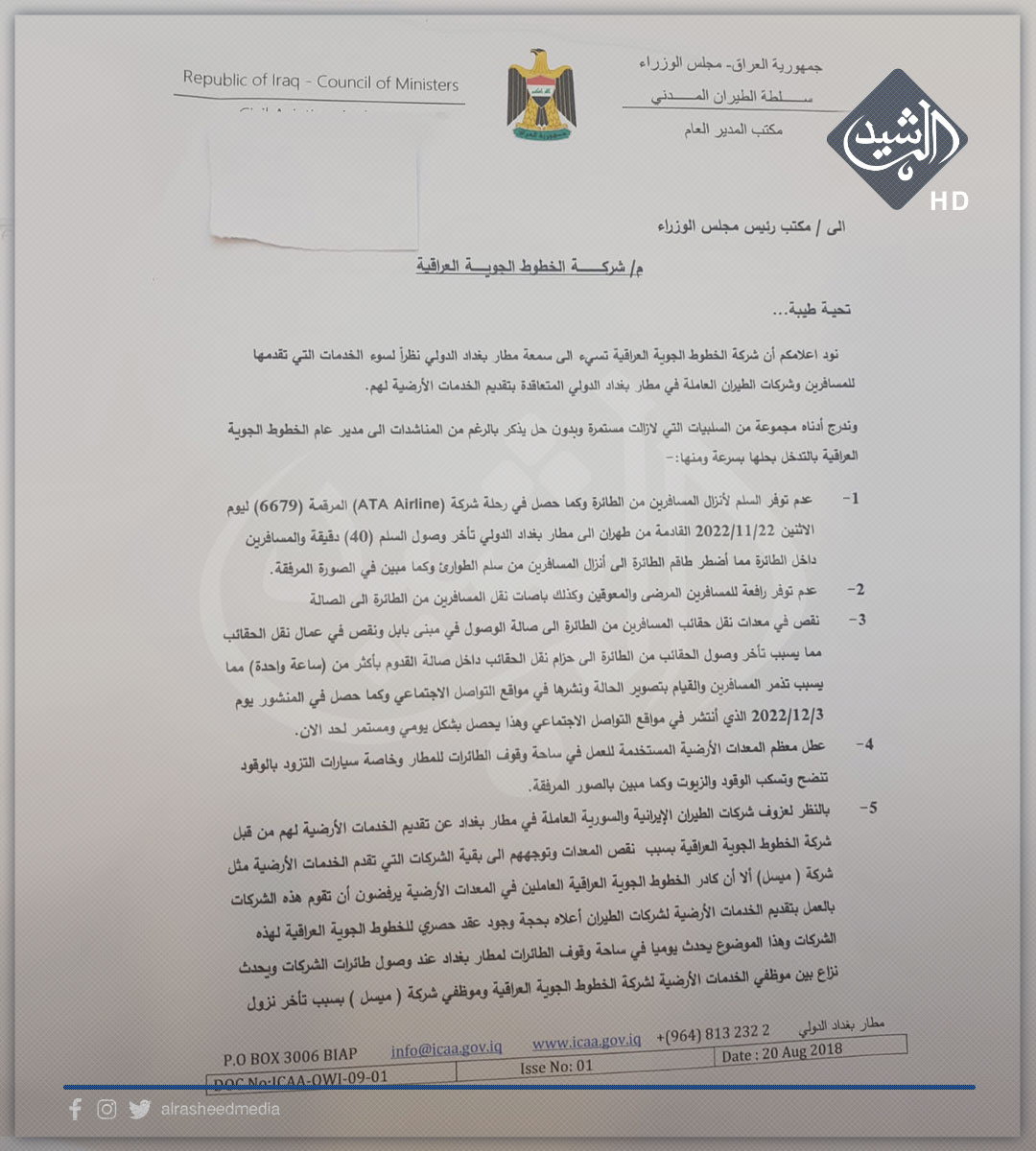 محلياتسلطة الطيران المدني: الخطوط الجوية العراقية تسيء لسمعة مطار بغداد بسبب سوء الخدمات قبل 3 سنوات 11 مشاهدات شارك الخطوط الجوية العراقية الوسومالخطوط الجوية العراقيةسلطة الطيران المدنيقد يهمك أيضا سياسة المجلس السياسي الوطني يعلن الاتفاق على آليات تسهل حسم اختيار رئيس مجلس النواب قبل 5 ساعات 11 مشاهدات الحكم الرابع الـVAR يتلاعب بدورينا .. تفاصيل صادمة في الحكم الرابع قبل 6 ساعات 11 مشاهدات عربي ودولي الحكومة الليبية تعلن مقتل رئيس الأركان محمد الحداد ومرافقيه اثر تحطم طائرتهم في أنقرة قبل 6 ساعات 20 مشاهدات عربي ودولي مقتل رئيس الأركان الليبي "محمد الحداد" ومرافقيه بتحطم طائرتهم أثناء عودتهم من أنقرة قبل 6 ساعات 17 مشاهدات عربي ودولي وسائل إعلام تركية: العثور على حطام طائرة رئيس الاركان الليبي التي سقطت بعد إقلاعها من أنقرة قبل 6 ساعات 10 مشاهدات