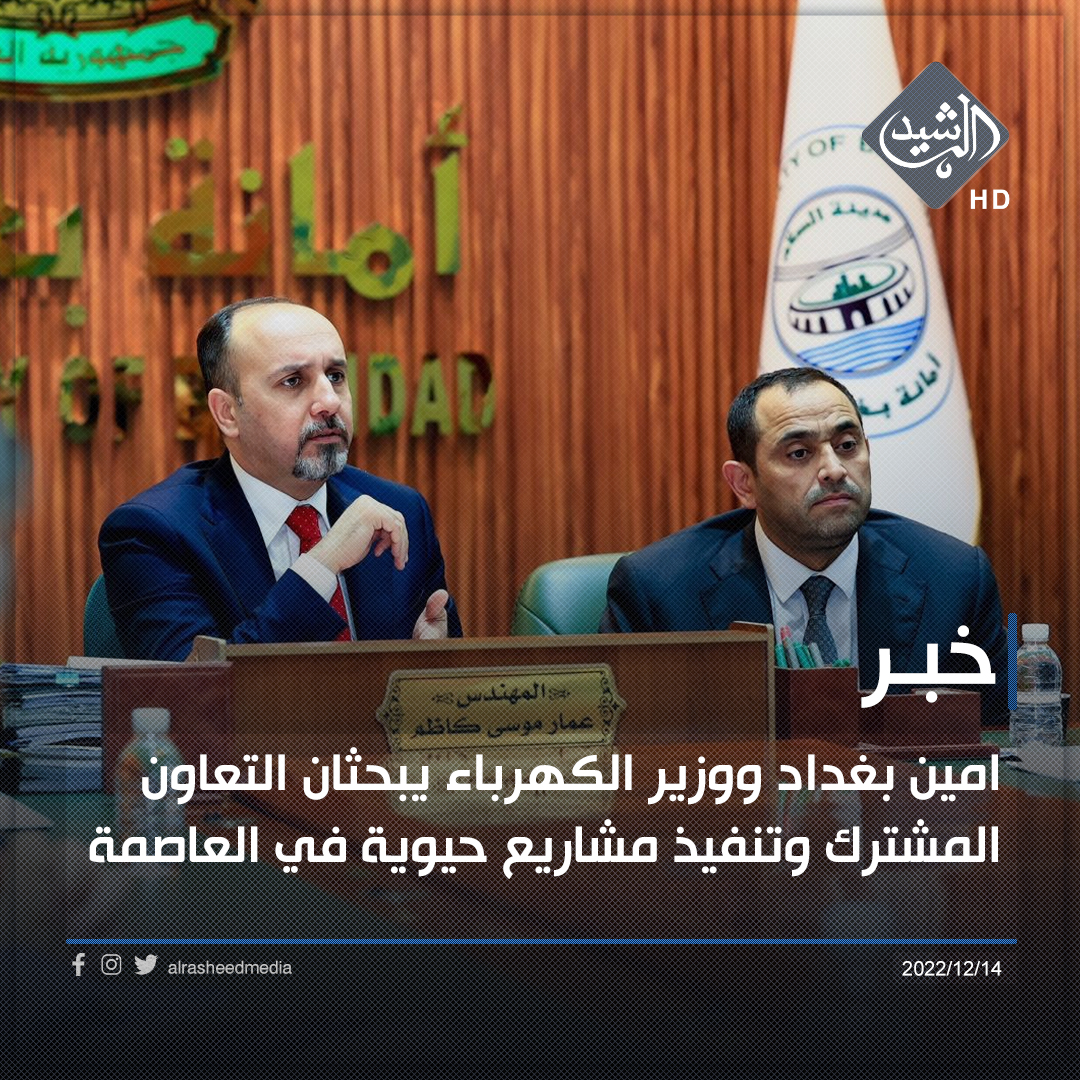 وتابع البيان، ان “امين بغداد قدم شكره لوزارة الكهرباء في ابدائها التعاون المستمر مع امانة بغداد بما يحقق الخدمة العامة والعمل على اعداد محضر مشترك يتضمن آلية عمل سريعة جداً تأتي بثمارها خلال عام ٢٠٢٣ “.