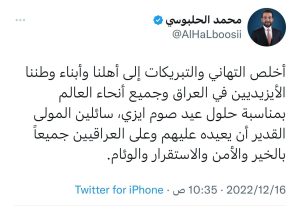 محلياتالحلبوسي يهنئ الايزيديين بحلول عيد الصوم قبل 3 سنوات 9 مشاهدات شارك الوسومالحلبوسيالمكون الإيزيديعيد الصومقد يهمك أيضا عربي ودولي موسكو: قد يتم عقد لقاء بين بوتين وترامب في القريب العاجل قبل 39 دقيقة 5 مشاهدات رياضة "توالي الأزمات".. ليفربول يوجه ضربة قوية لمحمد صلاح ويقرر بيعه قبل ساعة واحدة 7 مشاهدات عربي ودولي الرئيس اللبناني يطالب مجلس الأمن بالضغط على إسرائيل لتطبيق وقف إطلاق النار قبل ساعة واحدة 8 مشاهدات محليات العدل تعلن إطلاق سراح 761 نزيلاً خلال تشرين الثاني قبل ساعتين 11 مشاهدات عربي ودولي ارتفاع عدد ضحايا الفيضانات والانهيارات الأرضية في إندونيسيا إلى 846 قبل ساعتين 12 مشاهدات
