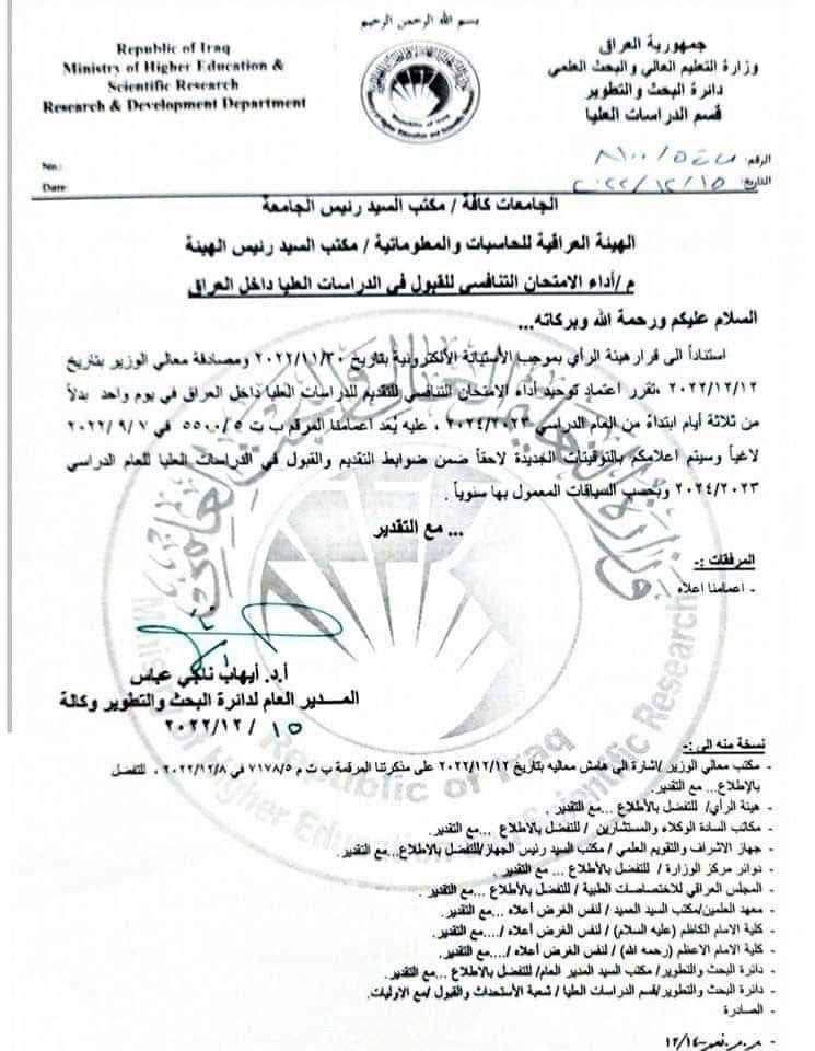 محلياتالتعليم تقرر ان يصبح الامتحان التنافسي للدراسات العليا في يوم واحد بدلاً من ثلاثة ايام قبل 3 سنوات 10 مشاهدات شارك الوسوموزارة التعليم العالي والبحث العلميقد يهمك أيضا أمن جهاز المخابرات ينفي تلقي الحكومة تحذيرًا عربيًا وغربيًا بقرب تعرض العراق لضربات عسكرية قبل 5 ساعات 22 مشاهدات أمن الداخلية تنفي اي محاولة لعبور اشخاص من سوريا عبر الجدار الكونكريتي على الشريط الحدودي قبل 7 ساعات 13 مشاهدات عربي ودولي بيان دولي مشترك بشأن غزة: دعم المرحلة الأولى من الاتفاق وبنود خطة ترامب قبل 7 ساعات 9 مشاهدات سياسة رئيس مجلس القضاء يؤكد أهمية حسم تسمية المرشح لرئاسة الجمهورية خلال المدة الدستورية قبل 8 ساعات 9 مشاهدات سياسة القاضي زيدان: لا يمكن دستورياً وقانونياً تأجيل او تمديد جلسة البرلمان الجديد الاولى قبل 8 ساعات 10 مشاهدات