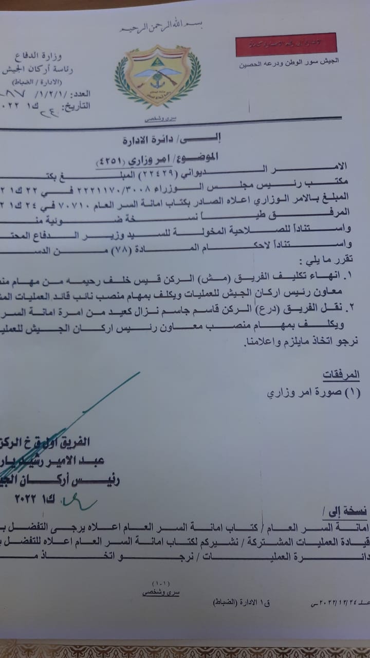 أمنبالوثيقة.. رئيس أركان الجيش يقرر إجراء تغييرين بمنصبين رفيعين قبل 3 سنوات 3 مشاهدات شارك الوسومالجيش العراقيقد يهمك أيضا عربي ودولي حماس: ندعو الوسطاء للضغط على إسرائيل لبدء عملية إعمار حقيقية لقطاع غزة قبل ساعة واحدة 3 مشاهدات محليات الداخلية: لا يسمح بوجود أي سلاح خارج إطار الدولة قبل ساعة واحدة 10 مشاهدات عربي ودولي عراقجي: منشآتنا تعرضت لأضرار لكن تقنيتنا ما تزال حاضرة قبل ساعتين 9 مشاهدات محليات الداخلية: تعاون مستمر مع القضاء لتجفيف ظاهرة الدكات العشائرية قبل ساعتين 9 مشاهدات عربي ودولي رئيس الحكومة اللبنانية: الجيش يستعد للمرحلة الثانية من خطة حصر السلاح قبل ساعتين 7 مشاهدات