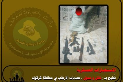 أعلنت مديرية الاستخبارات العسكرية، اليوم الخميس، الإطاحة بـ 11 إرهابياً في صلاح الدين ونينوى والأنبار وكركوك وميسان.