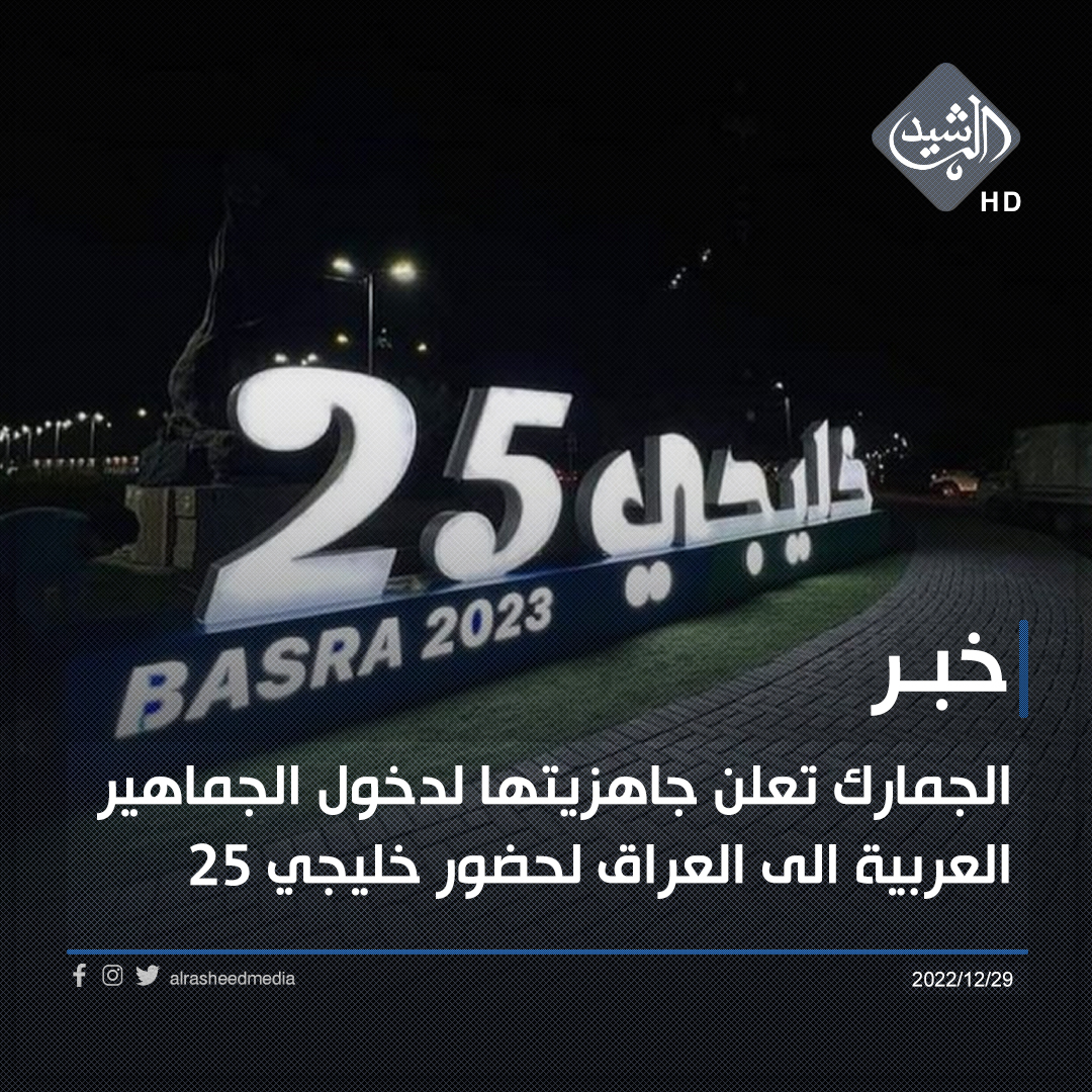 وذكرت الهيئة، في بيان تلقته “الرشيد”، انه “استنادا الى قرار مجلس الوزراء رقم ( ٣٥٤ ) لسنة ٢٠٢٢ ، وجه مدير عام الهيئة العامة للجمارك شاكر محمود الزبيدي الى المراكز الجمركية المعنية من اجل استقبال حدث بطولة خليجي ( ٢٥ ) في محافظة البصرة من خلال تسهيل اجراءات دخول الوفود الرياضية المشاركة و الزائرين من المشجعين و الكوادر الصحفية و الفنية من خلال مركزي جمرك سفوان وعرعر الحدوديين”.
