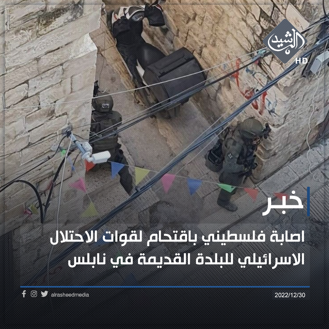 أصيب اليوم الجمعة، شاب فلسطيني بشظية بالرقبة خلال اقتحام قوات الاحتلال الإسرائيلي للبلدة القديمة في نابلس.