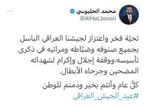 سياسةالحلبوسي يهنئ في ذكرى تأسيس الجيش العراقي قبل 3 سنوات 1 مشاهدة شارك الوسومالحلبوسيقد يهمك أيضا محليات دائرة الطب العدلي تسلّم رفات 70 شهيداً من ضحايا مجزرة بادوش قبل 6 دقائق 2 مشاهدات محليات الصحة توجه بالتحقيق في أسباب وفاة مريضة بأحدى المستشفيات الاهلية في بغداد قبل 31 دقيقة 3 مشاهدات أقتصاد التخطيط توقع وثيقة إطار التعاون مع الأمم المتحدة للتنمية المستدامة (2025–2029) قبل ساعة واحدة 10 مشاهدات عربي ودولي تركيا.. اعتقال 137 شخصا يشتبه بهم في التخطيط لشن هجمات إرهابية في عيد الميلاد قبل ساعة واحدة 6 مشاهدات أمن إحباط محاولة تهريب مستلزمات طبية في منفذ ميناء ام قصر الشمالي قبل ساعتين 14 مشاهدات