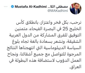 محلياتالكاظمي بشأن خليجي 25: سعداء ببلوغ السياسة التي انتهجناها النتائج المرجوة قبل 3 سنوات 4 مشاهدات شارك الوسومالكاظميقد يهمك أيضا سياسة الخارجية ترحب بقرار ايطاليا إجراء مراجعة لإرشادات السفر الخاصة بمواطنيها الراغبين بزيارة العراق قبل ساعتين 6 مشاهدات محليات التجارة تعلن ربط البطاقة التموينية بالوطنية إلكترونياً وتوجه لإعادة فتح الإضافة قبل 3 ساعات 9 مشاهدات أمن متهمان بالقتل والاغتصاب يهربان من سجن الاحداث في بغداد قبل 4 ساعات 12 مشاهدات أمن الحشد الشعبي يعلن اعتقال "واثق البطاط" بتهمة الإساءة إلى المؤسسات الأمنية قبل 4 ساعات 59 مشاهدات عربي ودولي وزير الخارجية الأمريكي: أحرزنا تقدما ملحوظًا على طريق إنهاء الحرب في أوكرانيا قبل 5 ساعات 8 مشاهدات