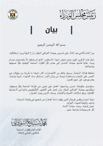 ستواصل حكومتنا، ضمن برنامجها، العمل على تعزيز دور قواتنا المسلحة بكلّ صنوفها، ويتقدّمهم جيشنا العراقي البطل، وأن تعمل على التطوير التكنولوجي والميداني لأسلحتها القتالية، ورفع إمكانات التحرّك والانتشار ومسك الأرض وصدّ العدوان.