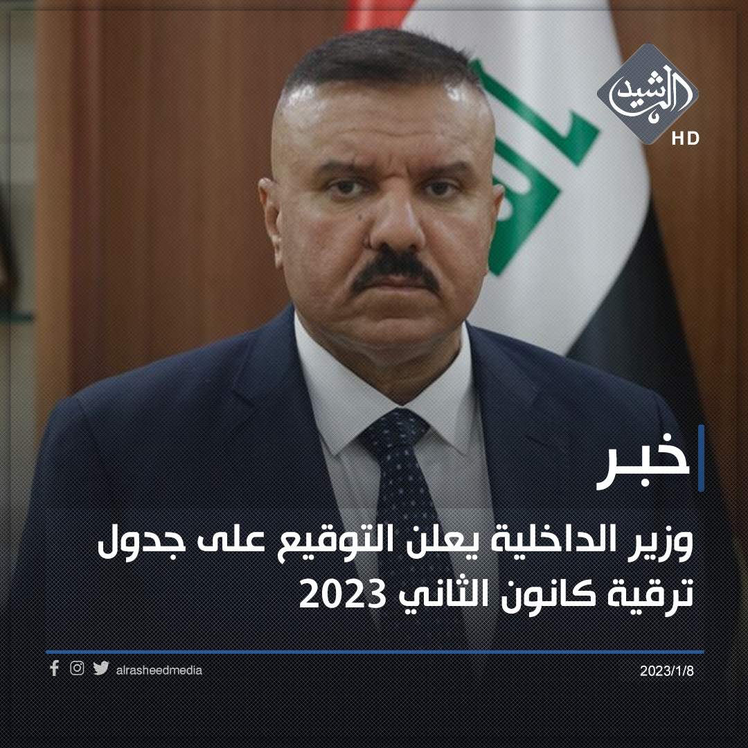 أعلن وزير الداخلية عبد الأمير الشمري، اليوم الأحد، التوقيع على جدول ترقية كانون الثاني 2023.