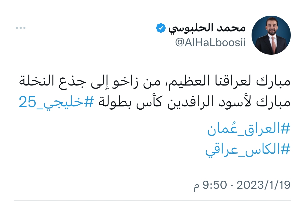 رياضةالحلبوسي يبارك للمنتخب الوطني الفوز ببطولة خليجي 25 قبل 3 سنوات 4 مشاهدات شارك الوسومالحلبوسيخليجي 25قد يهمك أيضا سياسة الرئيس الحلبوسي يبحث مع وفد الاعمار والتنمية أهمية استمرار الحوار لحسم الاستحقاقات الدستورية قبل 7 دقائق 2 مشاهدات أقتصاد خبراء: عاملان رئيسيان وراء ارتفاع الذهب والفضة إلى مستويات قياسية غير مسبوقة قبل 9 دقائق 2 مشاهدات محليات العمل تعلن تحويل أكثر من 63 ألف مستفيد من الحماية الاجتماعية إلى المؤسسات الحكومية قبل 20 دقيقة 5 مشاهدات رياضة العراق في المركز الـ58 في تصنيف "الفيفا" النهائي لعام 2025 واسبانيا تعتلي الصدارة قبل 23 دقيقة 6 مشاهدات محليات امانة بغداد تعلن ابادة أكثر من 19 ألف كلب سائب قبل 29 دقيقة 7 مشاهدات