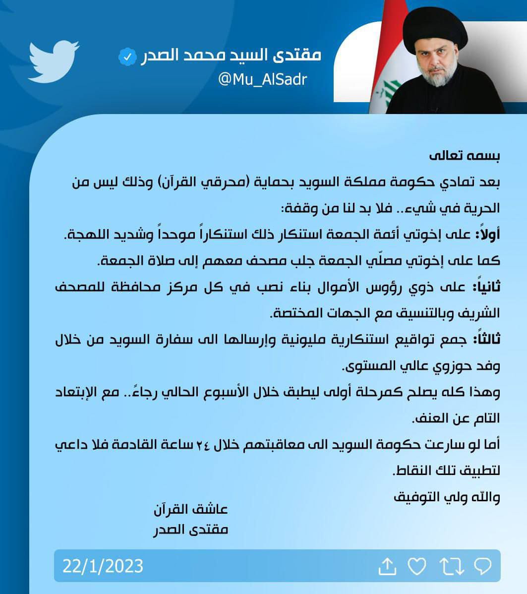 محلياتتغريدة للسيد الصدر بشأن حرق القرآن الكريم قبل 3 سنوات 3 مشاهدات شارك الصدر الوسومالصدرالقرآن الكريمقد يهمك أيضا عربي ودولي موسكو: قد يتم عقد لقاء بين بوتين وترامب في القريب العاجل قبل 33 دقيقة 5 مشاهدات رياضة "توالي الأزمات".. ليفربول يوجه ضربة قوية لمحمد صلاح ويقرر بيعه قبل ساعة واحدة 7 مشاهدات عربي ودولي الرئيس اللبناني يطالب مجلس الأمن بالضغط على إسرائيل لتطبيق وقف إطلاق النار قبل ساعة واحدة 8 مشاهدات محليات العدل تعلن إطلاق سراح 761 نزيلاً خلال تشرين الثاني قبل ساعتين 11 مشاهدات عربي ودولي ارتفاع عدد ضحايا الفيضانات والانهيارات الأرضية في إندونيسيا إلى 846 قبل ساعتين 12 مشاهدات
