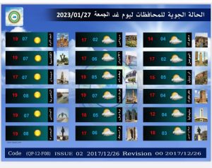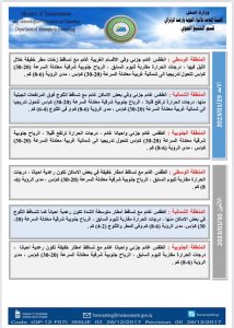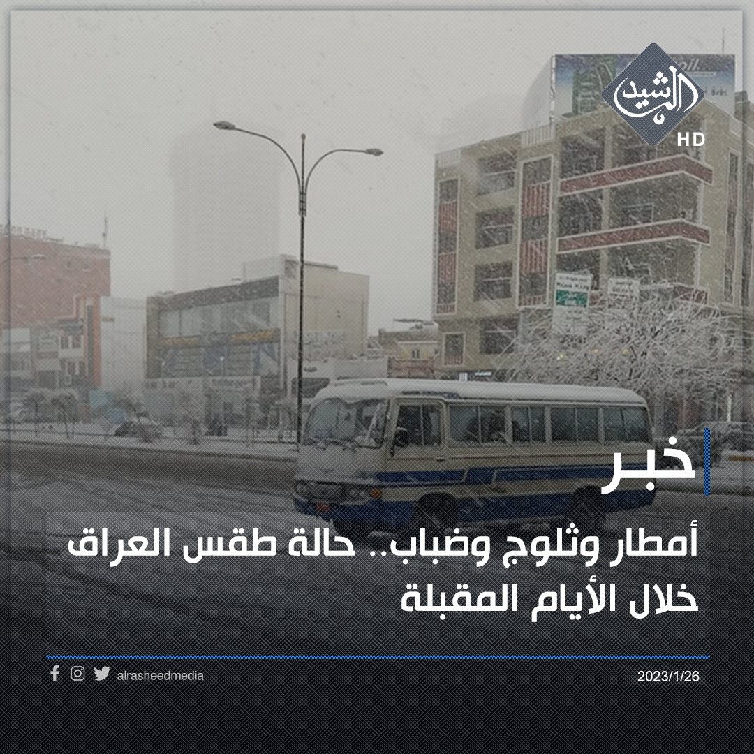 محلياتأمطار وثلوج وضباب.. حالة طقس العراق خلال الأيام المقبلة قبل 3 سنوات 6 مشاهدات شارك أعلنت هيئة الأنواء الجوية، حالة طقس العراق خلال الأيام المقبلة، فيما أشارت إلى هطول أمطار رعدية وتساقط ثلوج وتشكل الضباب.اقرأ ايضا الأنواء الجوية: ضباب كثيف وانعدام الرؤية فجر وصباح غدٍ الأربعاء في الوسط والجنوب بالوثيقة.. مجلس محافظة البصرة يستعد لجمع تواقيع لمناقشة موضوع "إقليم البصرة" إقليم كردستان يعطل الدوام الرسمي ليوم الخميس المقبل صلاح الدين تعطل الدوام الرسمي يومي الأربعاء والخميس المقبلين الوسومأمطارالطقسقد يهمك أيضا سياسة المجلس السياسي الوطني يعلن الاتفاق على آليات تسهل حسم اختيار رئيس مجلس النواب قبل 5 ساعات 10 مشاهدات الحكم الرابع الـVAR يتلاعب بدورينا .. تفاصيل صادمة في الحكم الرابع قبل 5 ساعات 10 مشاهدات عربي ودولي الحكومة الليبية تعلن مقتل رئيس الأركان محمد الحداد ومرافقيه اثر تحطم طائرتهم في أنقرة قبل 5 ساعات 19 مشاهدات عربي ودولي مقتل رئيس الأركان الليبي "محمد الحداد" ومرافقيه بتحطم طائرتهم أثناء عودتهم من أنقرة قبل 5 ساعات 16 مشاهدات عربي ودولي وسائل إعلام تركية: العثور على حطام طائرة رئيس الاركان الليبي التي سقطت بعد إقلاعها من أنقرة قبل 5 ساعات 9 مشاهدات