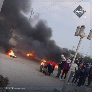 أقدم متظاهرون خريجون، على غلق دائرة المنتجات النفطية في ذي قار بالاطارات المحترقة.