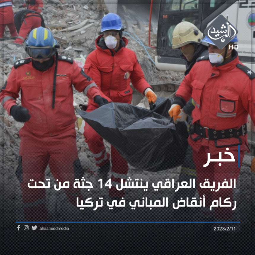 وذكرت المديرية في بيان تلقته الرشيد، أن”فرق الدفاع المدني العراقي التخصصية في مجال البحث والإنقاذ تواصل أعمالها لليوم الثالث على التوالي بانتشال جثث ضحايا الزلزال المدمر الذي ضرب عدد من المناطق في تركيا وسوريا وتسبب بخسائر بشرية ومادية كبيرة”.