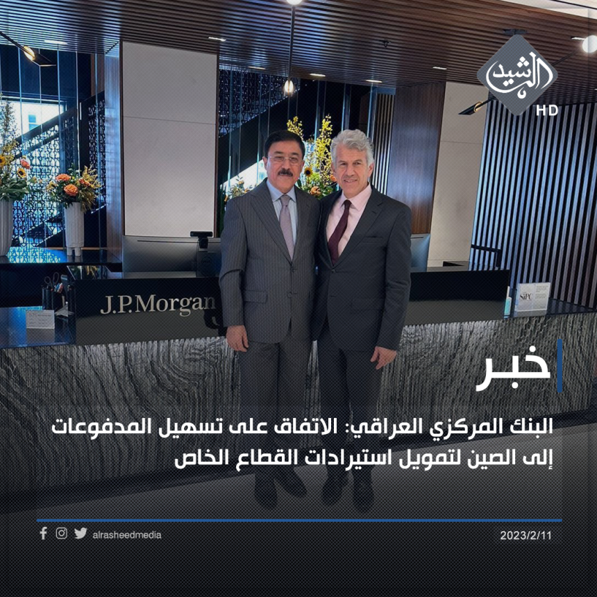 أعلن البنك المركزي العراقي، الاتفاق مع مصرف جي بي مورغان لتسهيل المدفوعات من النظام المصرفي العراقي إلى الصين لتمويل استيرادات القطاع الخاص بشكل مباشر.