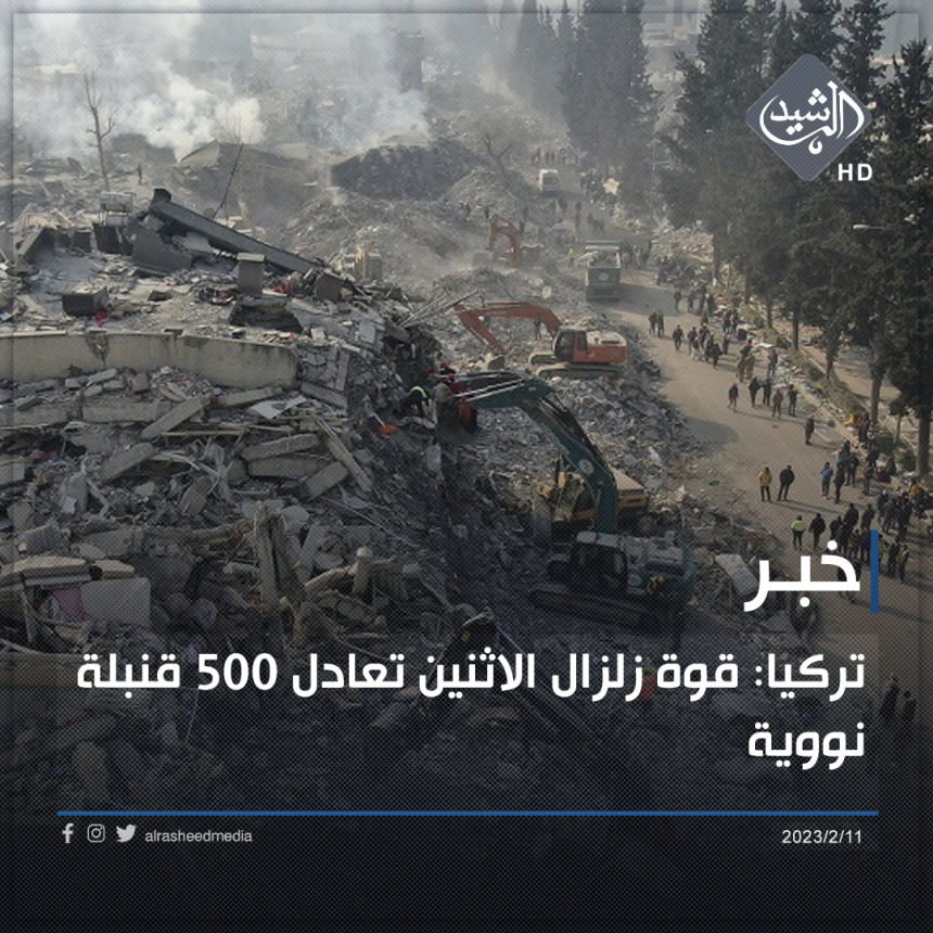 قراءة: تركيا: قوة زلزال الاثنين تعادل 500 قنبلة نووية