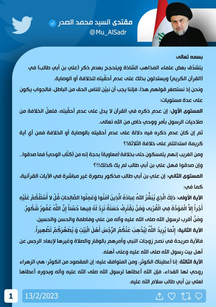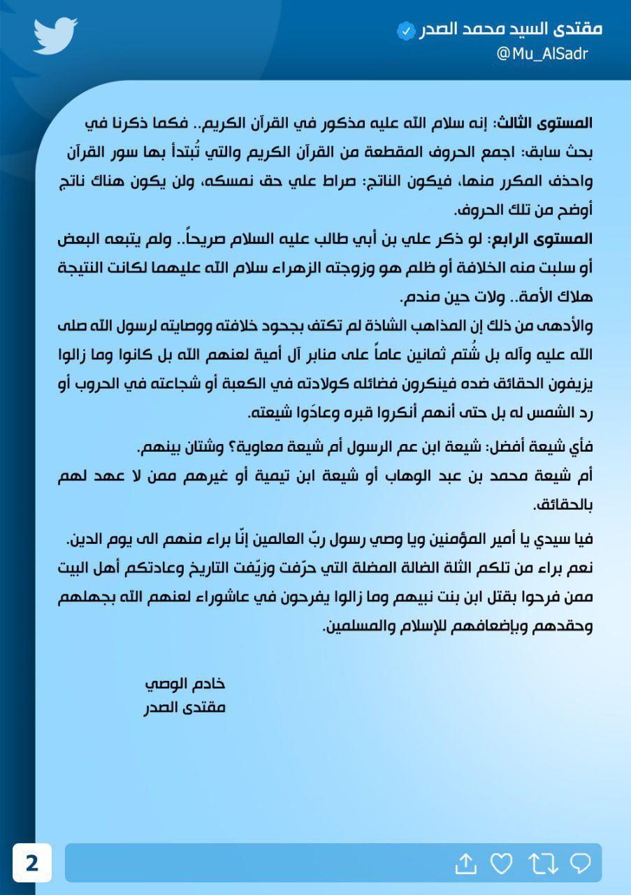 محلياتتغريدة جديدة للسيد الصدر قبل 3 سنوات 2 مشاهدات شارك قائمة الصور 1/2 الوسومالصدرقد يهمك أيضا عربي ودولي مجلس الشيوخ الأمريكي يصوت لصالح إلغاء عقوبات قانون قيصر عن سوريا قبل 10 دقائق 2 مشاهدات أمن أمن كردستان يعتقل مخمورًا قام بالاعتداء على مقابر المسيحيين في شقلاوة بمحافظة أربيل قبل 56 دقيقة 6 مشاهدات محليات بابل تقرر تعطيل الدوام الرسمي ليوم غدٍ الخميس بسبب سوء الاحوال الجوية قبل ساعة واحدة 14 مشاهدات محليات ذي قار تعلن تعطيل الدوام في المدارس فقط يوم غدٍ الخميس بسبب سوء الأحوال الجوية قبل ساعتين 11 مشاهدات أمن وزارة الدفاع تنفي وقوع انفجارات داخل قاعدة الشهيد محمد علاء الجوية قبل ساعتين 6 مشاهدات