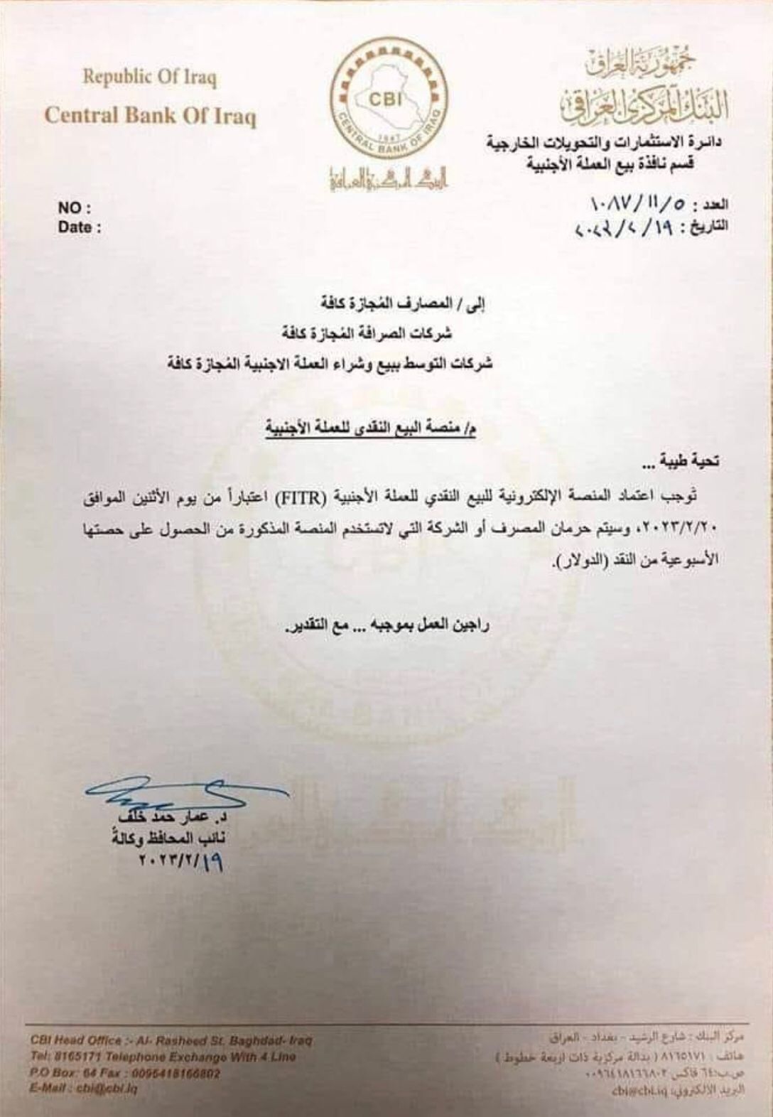 أقتصادالبنك المركزي يفرض على المصارف وشركات الصيرفة تطبيق المنصة الالكترونية بدءاً من الغد قبل 3 سنوات 9 مشاهدات شارك البنك المركزي العراقيالبنك المركزي يفرض على المصارف وشركات الصيرفة تطبيق المنصة الالكترونية بدءاً من الغد الوسومالبنك المركزي العراقيقد يهمك أيضا محليات السفارة العراقيَّة في أنقرة تعلن إعادة طفل عراقي مختطف من قبل داعش منذ 2014 إلى ذويه قبل ساعة واحدة 12 مشاهدات أقتصاد انخفاض اسعار صرف الدولار مقابل الدينار العراقي مع الاغلاق قبل ساعتين 9 مشاهدات أقتصاد السوداني يوجه بإعادة النظر باحتساب الإيرادات غير النفطية في إقليم كردستان قبل ساعتين 7 مشاهدات أقتصاد المجلس الوزاري للاقتصاد يقرر تخفيض تخصيصات الإيفاد لموظفي الدولة بنسبة 90% قبل ساعتين 8 مشاهدات سياسة السوداني يوجه وزارة التخطيط بإجراء التحديث اللازم للتقرير الخاص بتوحيد سلم الرواتب قبل ساعتين 12 مشاهدات