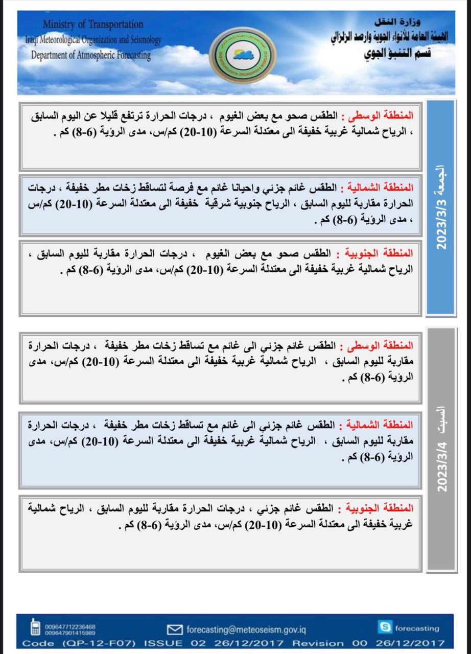 طقس العراق.. هطول أمطار وارتفاع بالحرارة خلال الأيام المقبلة