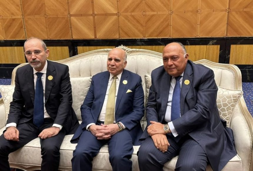وذكر بيان للخارجية العراقية، تلقته “الرشيد”، ان “وزيرها فؤاد حسين، ووزير خارجيَّة جُمْهُوريَّة مصر سامح شكريّ، ونائب رئيس الوزراء وزير خارجيَّة وشؤون المغتربين في المملكة الأردنيَّة الهاشميَّة أيمن الصفديّ، عقدوا إجتماعاً ضمن آلية التنسيق الثلاثيّ بين البلدان الثلاث، وذلك على هامش الإجتماع الوزاريّ التحضيريّ لمجلس جامعة الدول العربيَّة على مُستوى القمة في دورته الثانية والثلاثين في جدة”.