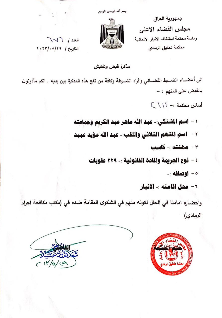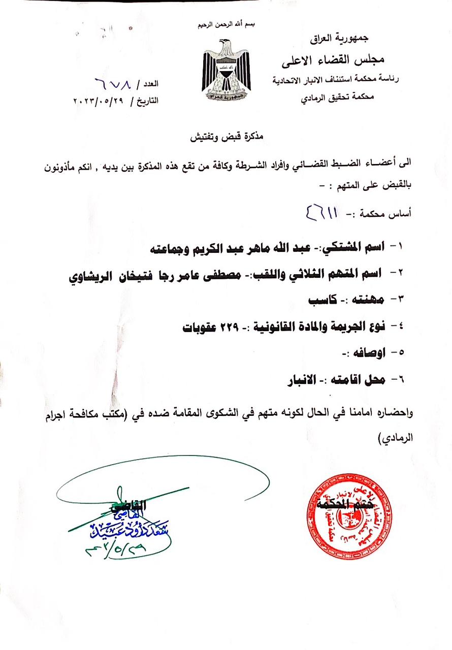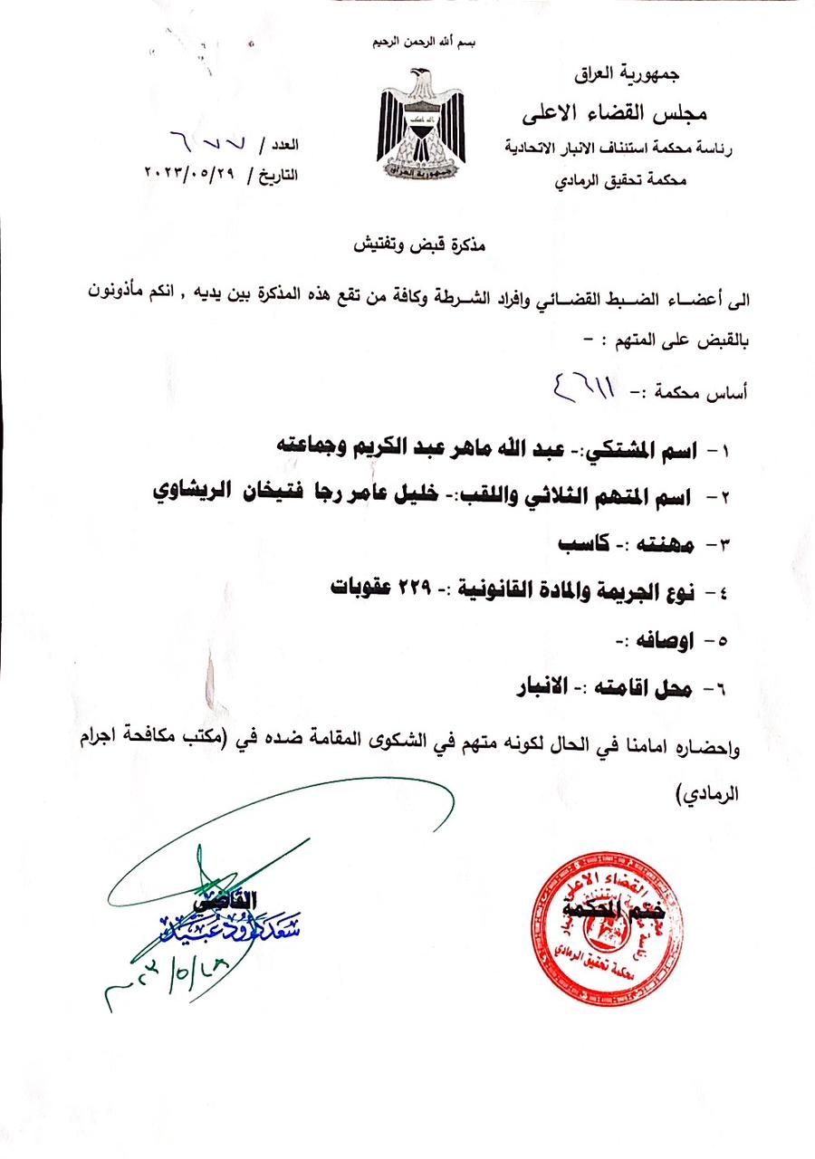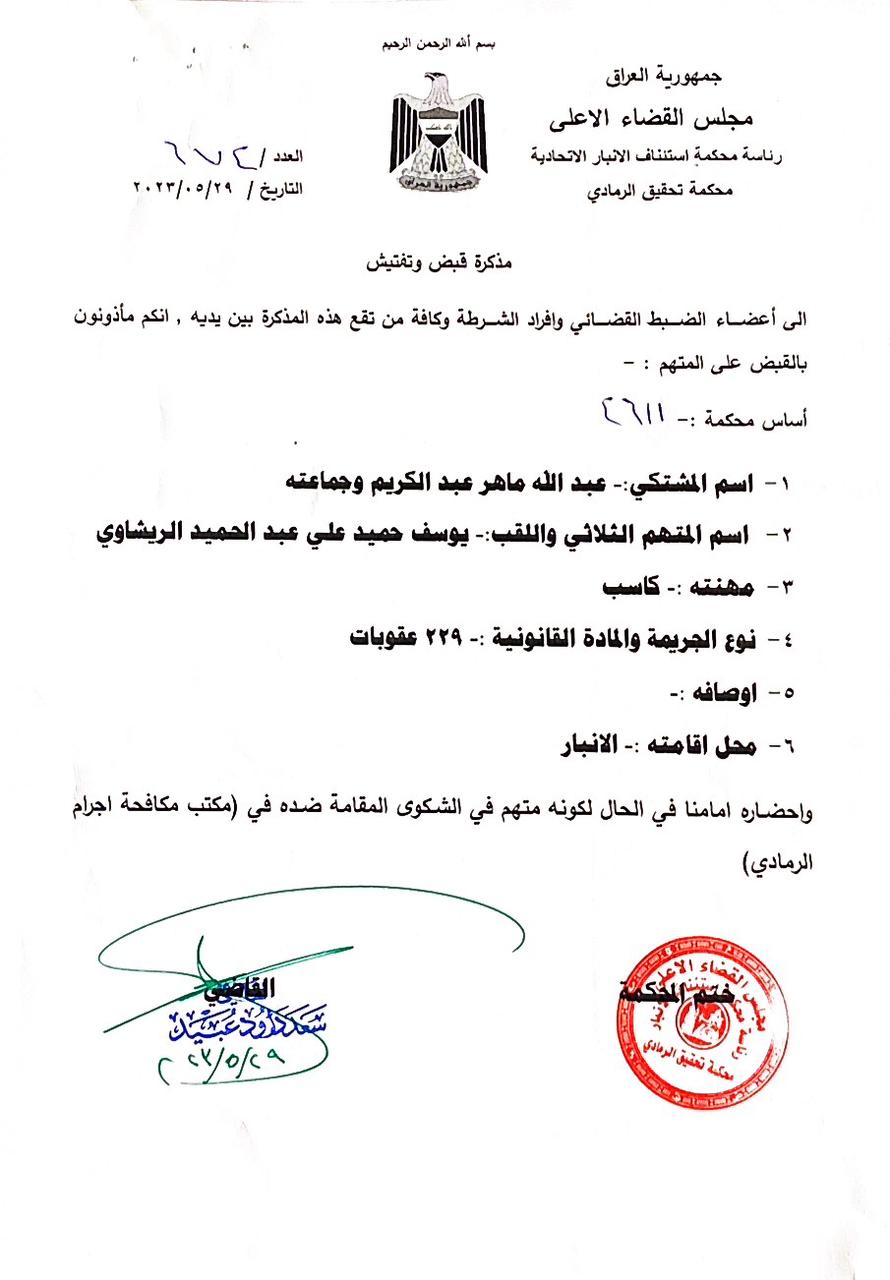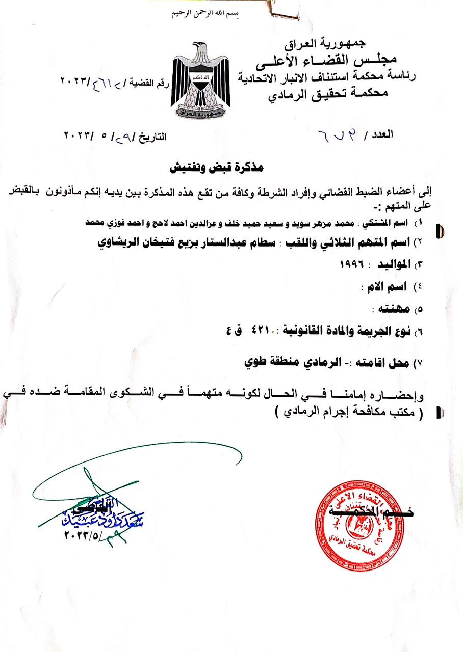 أمنلقيامهم بالسطو المسلح والاعتداء على موظفين.. اوامر قبض بحق سطام ابو ريشة واخرين (وثائق) قبل 3 سنوات 8 مشاهدات شارك صدور مذكرة قبض بحق "سطام ابو ريشة" ومجموعة اخرين (وثائق) لقيامهم بالسطو المسلح والاعتداء على موظفين.. اوامر قبض بحق سطام ابو ريشة واخرين (وثائق) لقيامهم بالسطو المسلح والاعتداء على موظفين.. اوامر قبض بحق سطام ابو ريشة واخرين (وثائق) لقيامهم بالسطو المسلح والاعتداء على موظفين.. اوامر قبض بحق سطام ابو ريشة واخرين (وثائق) لقيامهم بالسطو المسلح والاعتداء على موظفين.. اوامر قبض بحق سطام ابو ريشة واخرين (وثائق) لقيامهم بالسطو المسلح والاعتداء على موظفين.. اوامر قبض بحق سطام ابو ريشة واخرين (وثائق) الوسومسطام ابو ريشةقد يهمك أيضا رياضة أحدهم من فنربخشة وآخر من غلطة سراي.. اعتقال 27 لاعبًا بالدوري التركي بقضية "المراهنات" قبل 6 دقائق 2 مشاهدات عربي ودولي فرنسا.. محاكمة عراقيين وسوداني إثر حادث غرق مركب مهاجرين خلف قتلى في قناة المانش قبل 37 دقيقة 6 مشاهدات عربي ودولي صحيفة عبرية: ارتفاع غير مسبوق في حالات انتحار الجنود الإسرائيليين بعد حرب غزة قبل 48 دقيقة 6 مشاهدات عربي ودولي الكرملين: إن لم نحقق أهدافنا بالطرق السلمية سنواصل عمليتنا العسكرية في أوكرانيا قبل ساعة واحدة 8 مشاهدات رياضة قائد السودان قبل مواجهة العراق: نتجاوز فواجع الحرب بكرة القدم والفوز "يوم عيد" قبل ساعتين 10 مشاهدات
