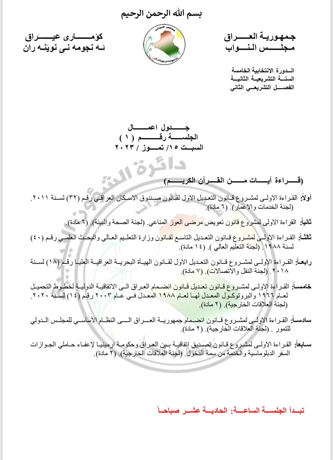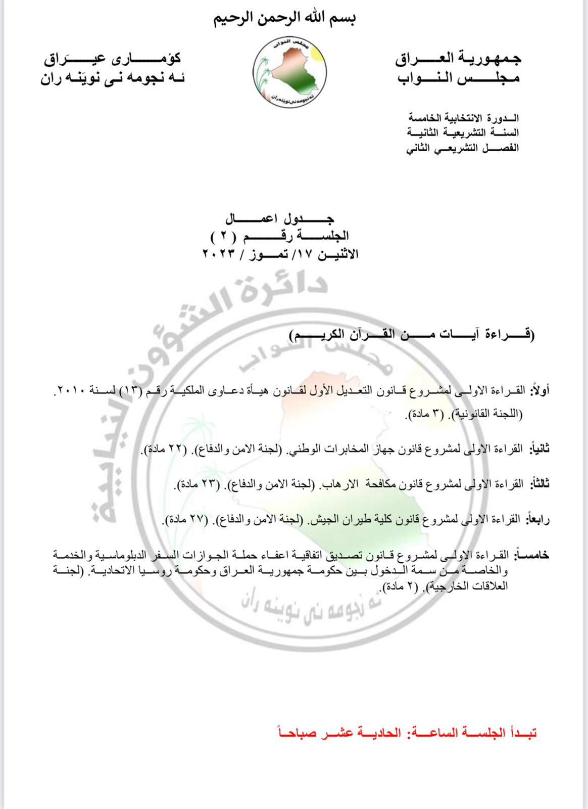 سياسةمجلس النواب يستأنف جلساته السبت المقبل قبل سنتين 3 مشاهدات شارك مجلس النواب يستأنف جلساته السبت المقبل مجلس النواب يستأنف جلساته السبت المقبل الوسوممجلس النوابقد يهمك أيضا أقتصاد نتنياهو يعلن رسميًا المصادقة على اتفاق الغاز مع مصر بقيمة 35 مليار دولار قبل 20 دقيقة 3 مشاهدات الاخبار العاجلة الخارجية: العراق ملتزم بتعزيز العلاقات مع الولايات المتحدة بما يسهم في بناء شراكة طويلة الامد قبل 36 دقيقة 4 مشاهدات سياسة العراق يرحب بالتصويت التاريخي للكونغرس على إلغاء تفويضي استخدام القوة العسكرية قبل 41 دقيقة 5 مشاهدات سياسة رئيس باكستان "آصف علي زرداري" يزور العراق الأسبوع المقبل قبل 48 دقيقة 5 مشاهدات محليات النجف تقرر تعطيل الدوام الرسمي للمدارس فقط يوم غدٍ الخميس بسبب سوء الأحوال الجوية قبل 57 دقيقة 4 مشاهدات