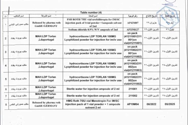 وتابع، أن “هذه القوائم خاصة بقيام المكاتب العلمية ومذاخر الادوية المشمولة بقرار مجلس الوزراء المرقم ٢٣٢٤٧ لسنة ٢٠٢٣ بالسحب الطوعي للأدوية غير مطابقة للمواصفات بعد اصدار نتائج الفحص من قبل المركز الوطني للرقابة والبحوث الدوائية”.