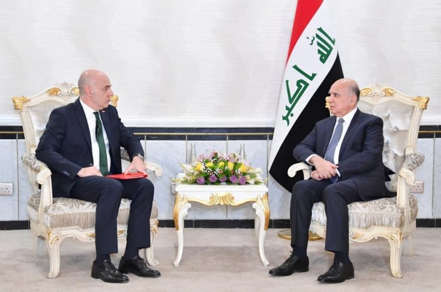 وذكر بيان لوزارة الخارجية، تلقته “الرشيد”، ان “نائب رئيس مجلس الوزراء وزير الخارجيَّة فؤاد حسين، استقبل سفير الجُمْهُوريَّة التركيَّة لدى العراق علي رضا كوناي، وجرى، خلال اللقاء، استعراض أوجه التعاون بين بغداد وأنقرة، وسُبُل تعزيز العلاقات الثنائيَّة وتطويرها، بما يخدم مصلحة الشعبين الصديقين”.