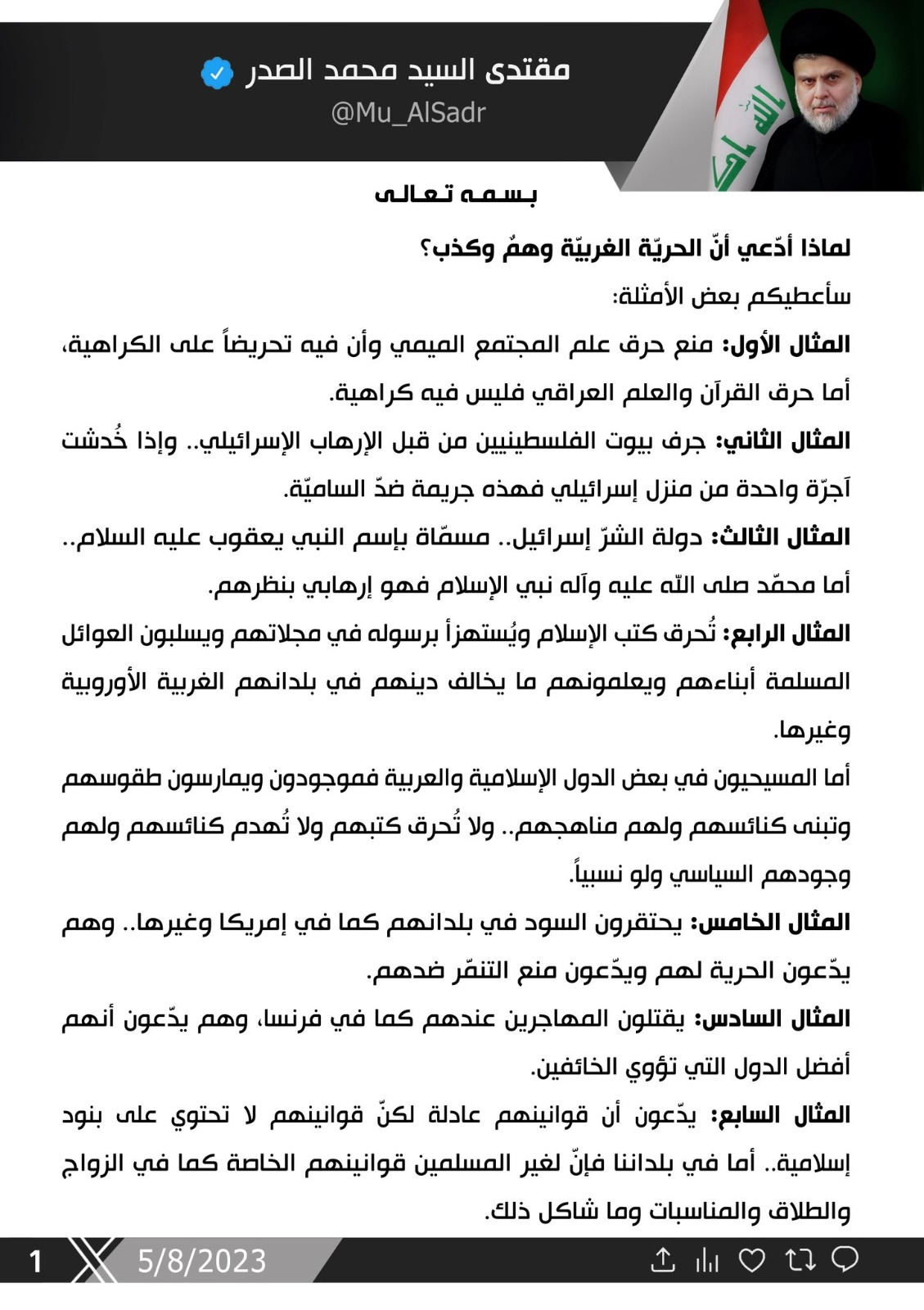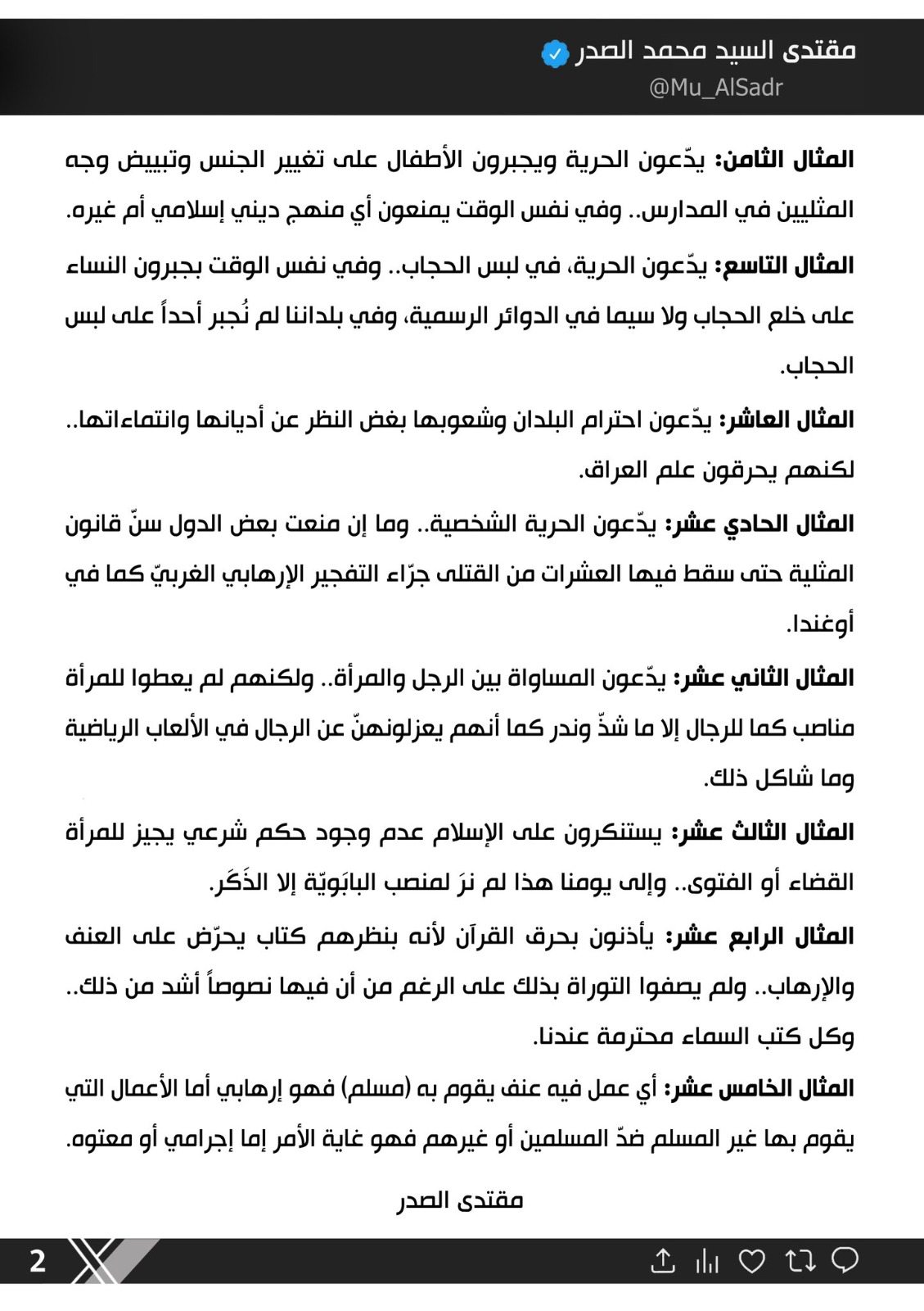 سياسةالسيد الصدر يطرح 15 مثالاً عن وهم وكذب الحرية الغربية قبل سنتين 2 مشاهدات 1 شارك وزير السيد الصدر يستنكر انقطاع الكهرباء في عموم العراق السيد الصدر يطرح 15 مثالاً عن وهم وكذب الحرية الغربية السيد الصدر يطرح 15 مثالاً عن وهم وكذب الحرية الغربية الوسومالصدرقد يهمك أيضا محليات مفوضية الانتخابات تطلق استمارة طلبات تشكيل إقليم البصرة قبل 3 ساعات 20 مشاهدات الحكم الرابع كواليس الصراعات داخل اتحاد الكرة اليوم في الحكم الرابع قبل 3 ساعات 8 مشاهدات عربي ودولي القيادة الوسطى الأمريكية: قتلنا 14 إرهابيًا من داعش واعتقلنا 119 خلال الشهور الستة الماضية قبل 3 ساعات 10 مشاهدات سياسة الرئيس الحلبوسي يؤكد على اعضاء كتلة "تقدم" ان يكونوا قدر المسؤولية بالحفاظ على الاستحقاقات قبل 4 ساعات 8 مشاهدات عربي ودولي الصحة العالمية: مقتل أكثر من 1600 شخص خلال هجمات على المراكز الصحية في السودان قبل 4 ساعات 6 مشاهدات