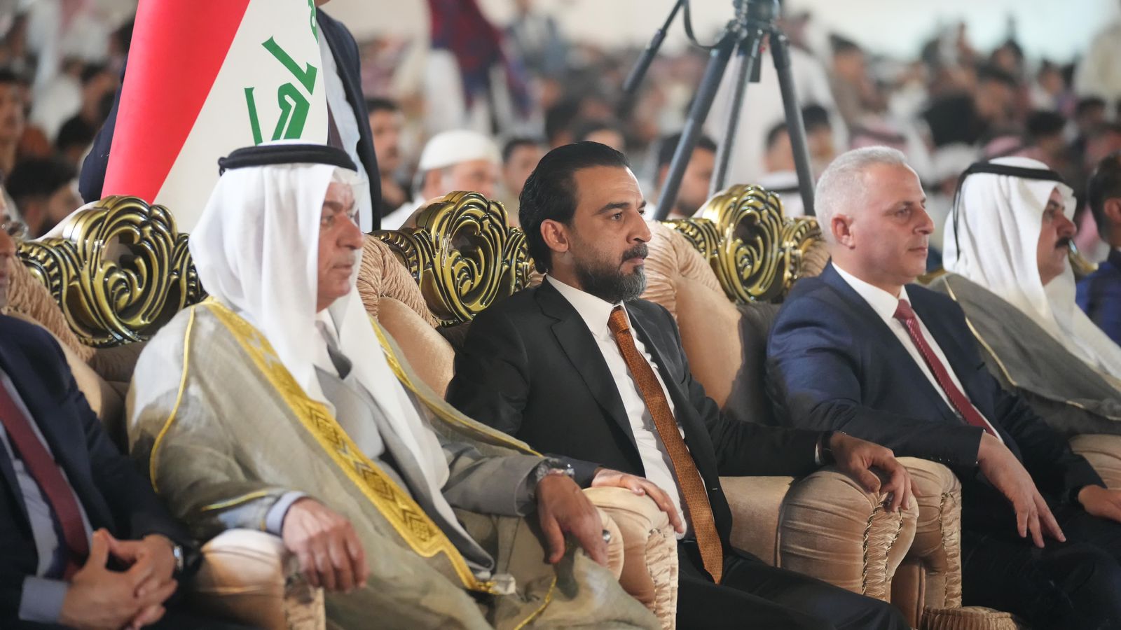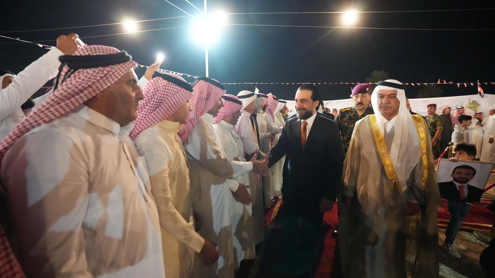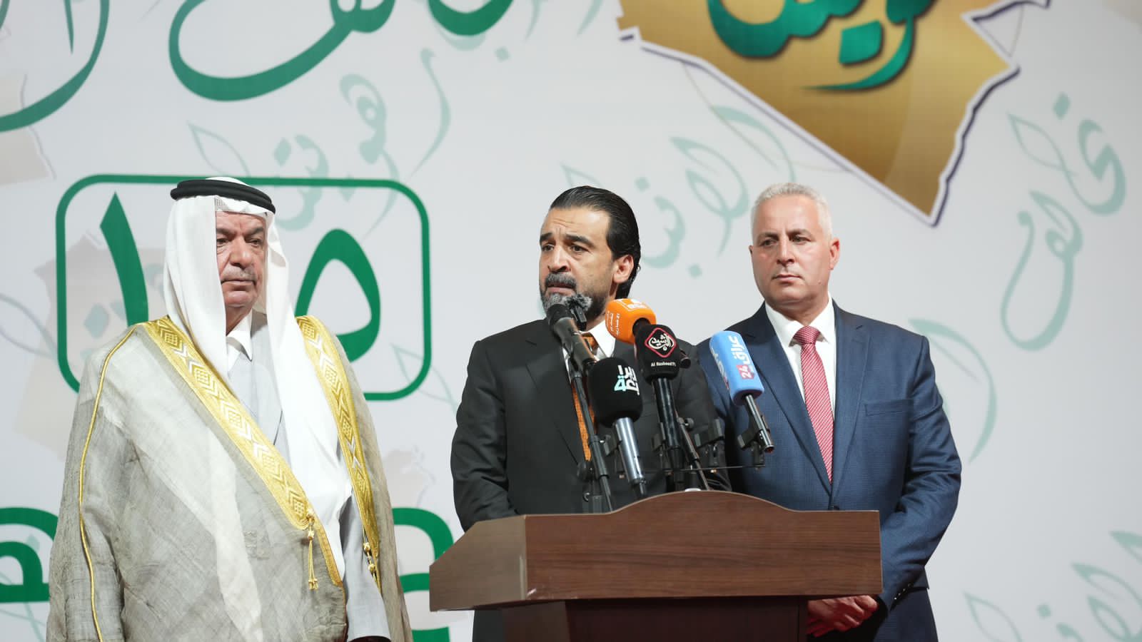 رئيس مجلس النواب محمد الحلبوسي يحضر مؤتمراً جماهيرياً في قضاء الرمانة.
