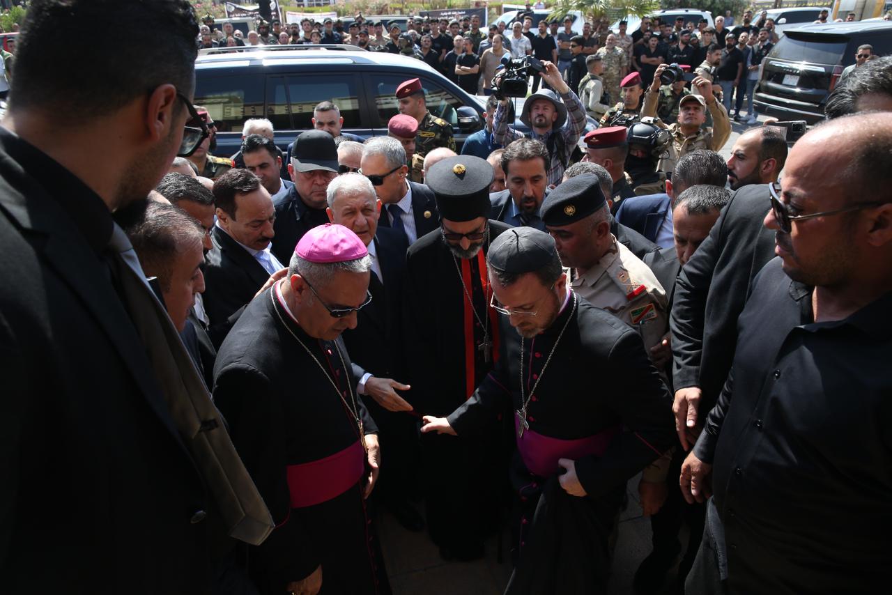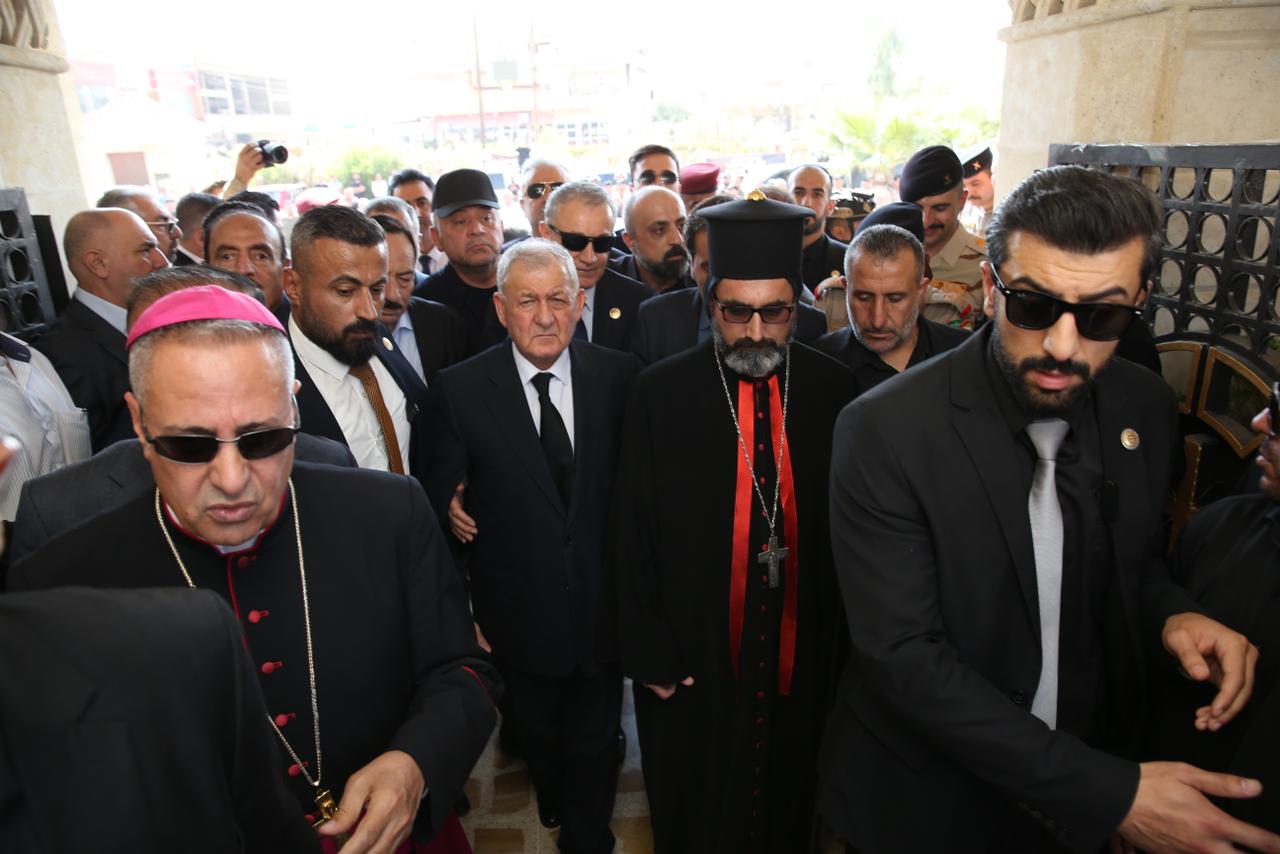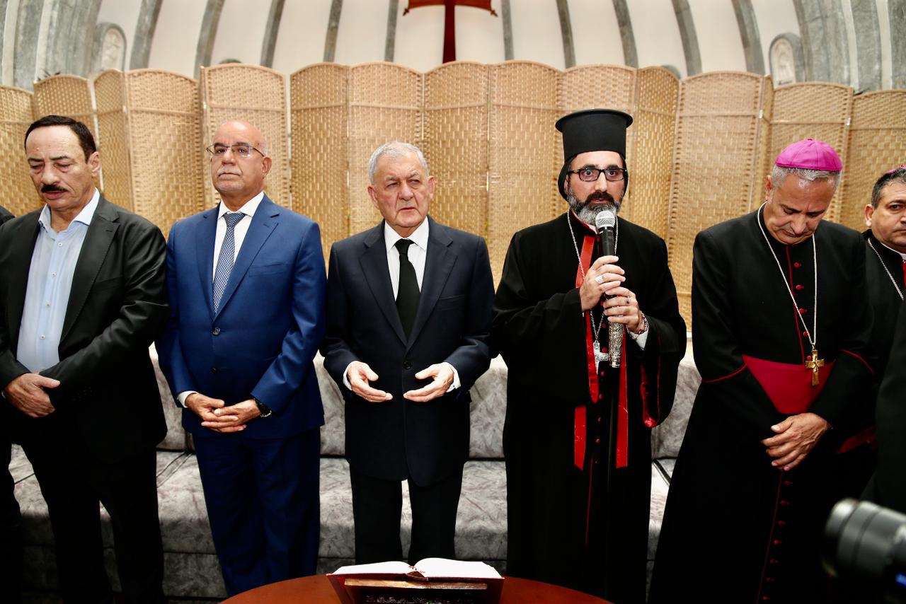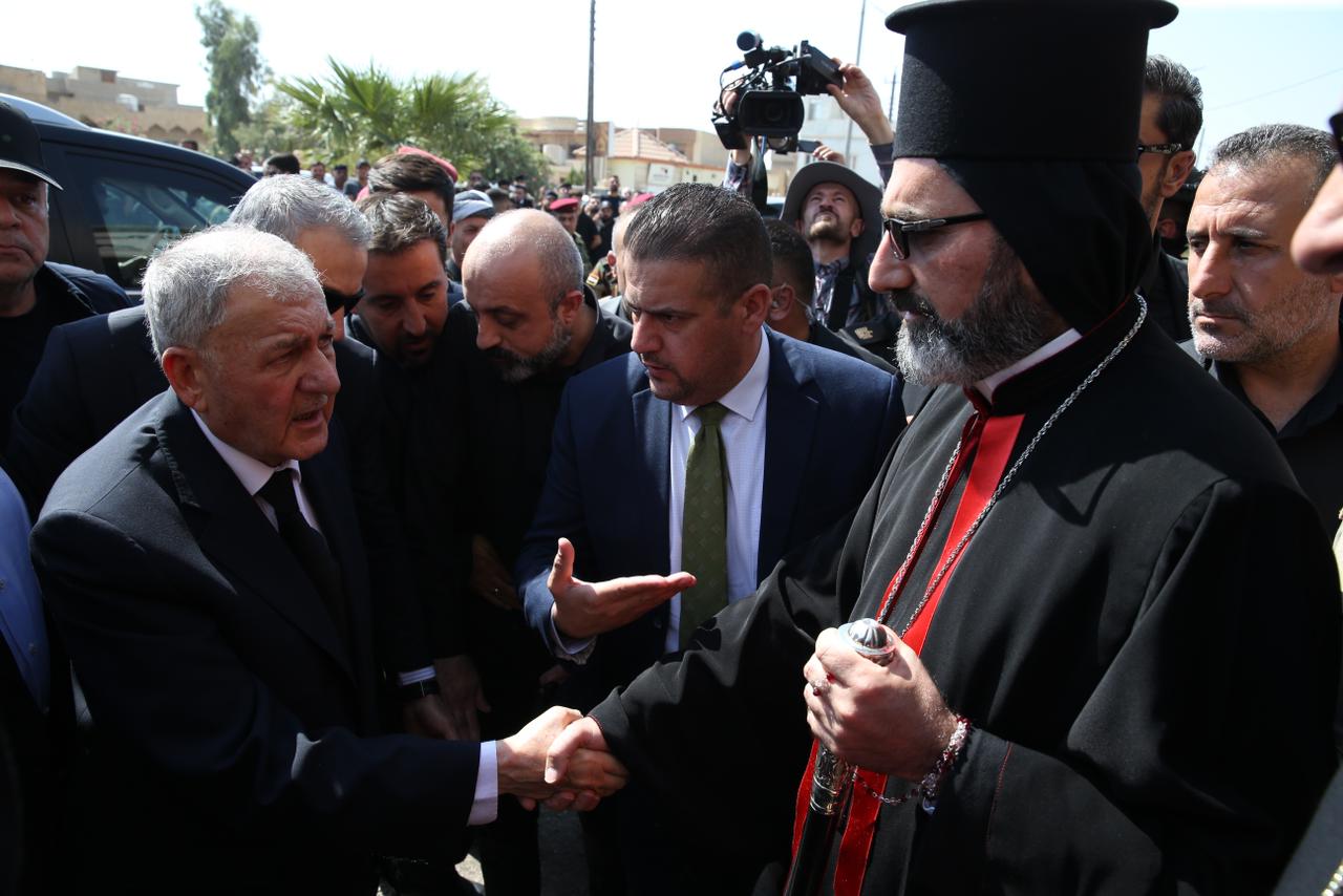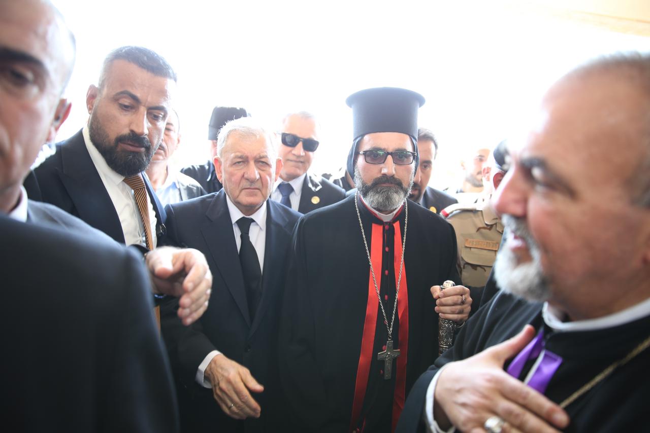 رئيس الجمهورية عبد اللطيف جمال رشيد يقدم التعازي في مطرانية مار بهنام وسارة إلى عوائل ضحايا فاجعة حريق قضاء الحمدانية.