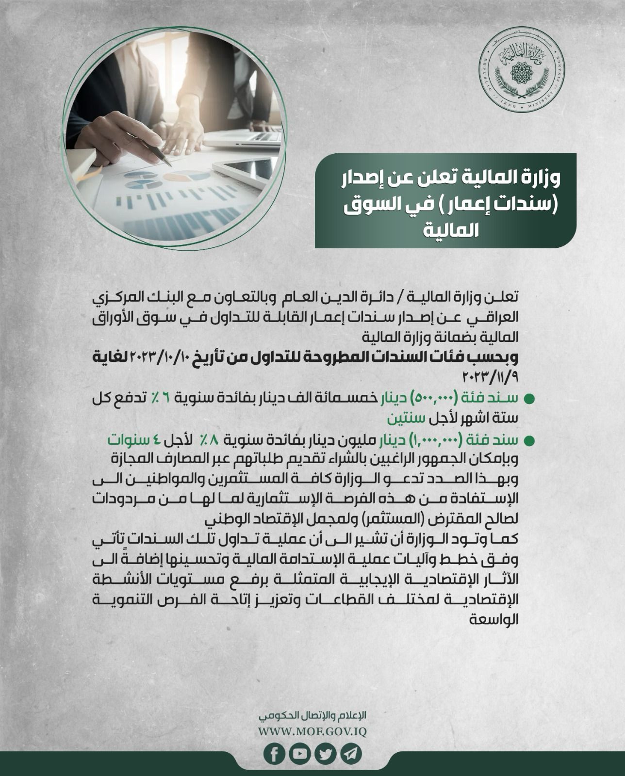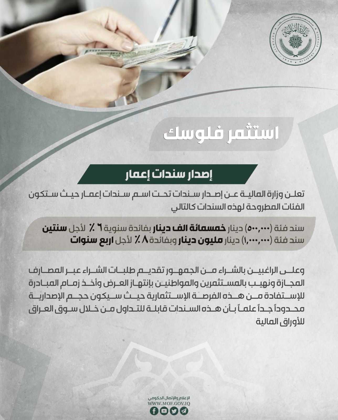 أقتصادوزارة المالية تعلن اصدار "سندات اعمار" في سوق الاوراق المالية قبل سنتين 4 مشاهدات شارك المالية: صدور أوامر تعيين 1781 من حملة الشهادات بمركز الوزارة وتشكيلاتها وزارة المالية تعلن اصدار "سندات اعمار" في سوق الاوراق المالية وزارة المالية تعلن اصدار "سندات اعمار" في سوق الاوراق المالية وزارة المالية تعلن اصدار "سندات اعمار" في سوق الاوراق المالية الوسوموزارة الماليةقد يهمك أيضا عربي ودولي فرنسا تتجه لتشريع طارئ لتفادي الشلل بعد تعثر موازنة 2026 قبل 31 دقيقة 4 مشاهدات عربي ودولي 1.6 مليون فلسطيني يواجهون المجاعة في غزة ووفاة 1200 مريض بسبب الحصار قبل 57 دقيقة 6 مشاهدات عربي ودولي واشنطن: على الرئيس الفنزويلي نيكولاس مادورو "الرحيل" قبل ساعة واحدة 7 مشاهدات عربي ودولي بعد تقرير البنتاغون.. الصين ترد: لسنا في سباق تسلح نووي مع أحد قبل ساعتين 9 مشاهدات محليات إقليم كردستان يعطل الدوام الرسمي ليوم الخميس المقبل قبل ساعتين 13 مشاهدات
