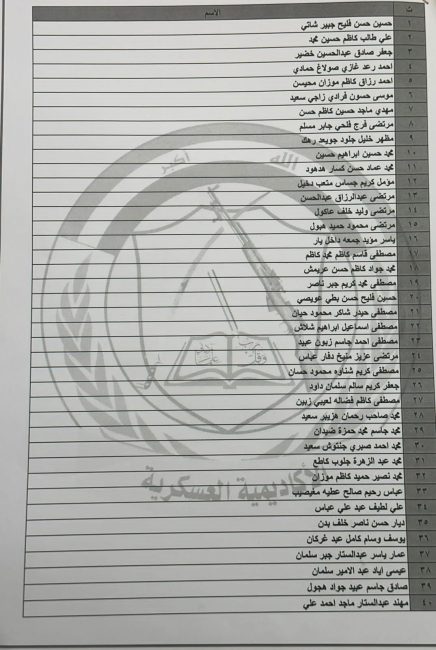 وأضاف ان “التحاقهم بالدورة يكون يوم غد الثلاثاء الموافق (24 تشرين الأول 2023)، الساعة 800 صباحاً، في الكلية العسكرية الرابعة بالناصرية”.